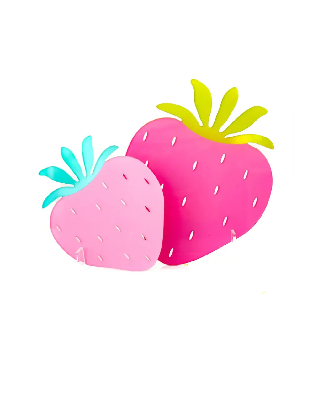 - Strawberries measure 8 in. and 6 in. and come with clear acrylic stands.