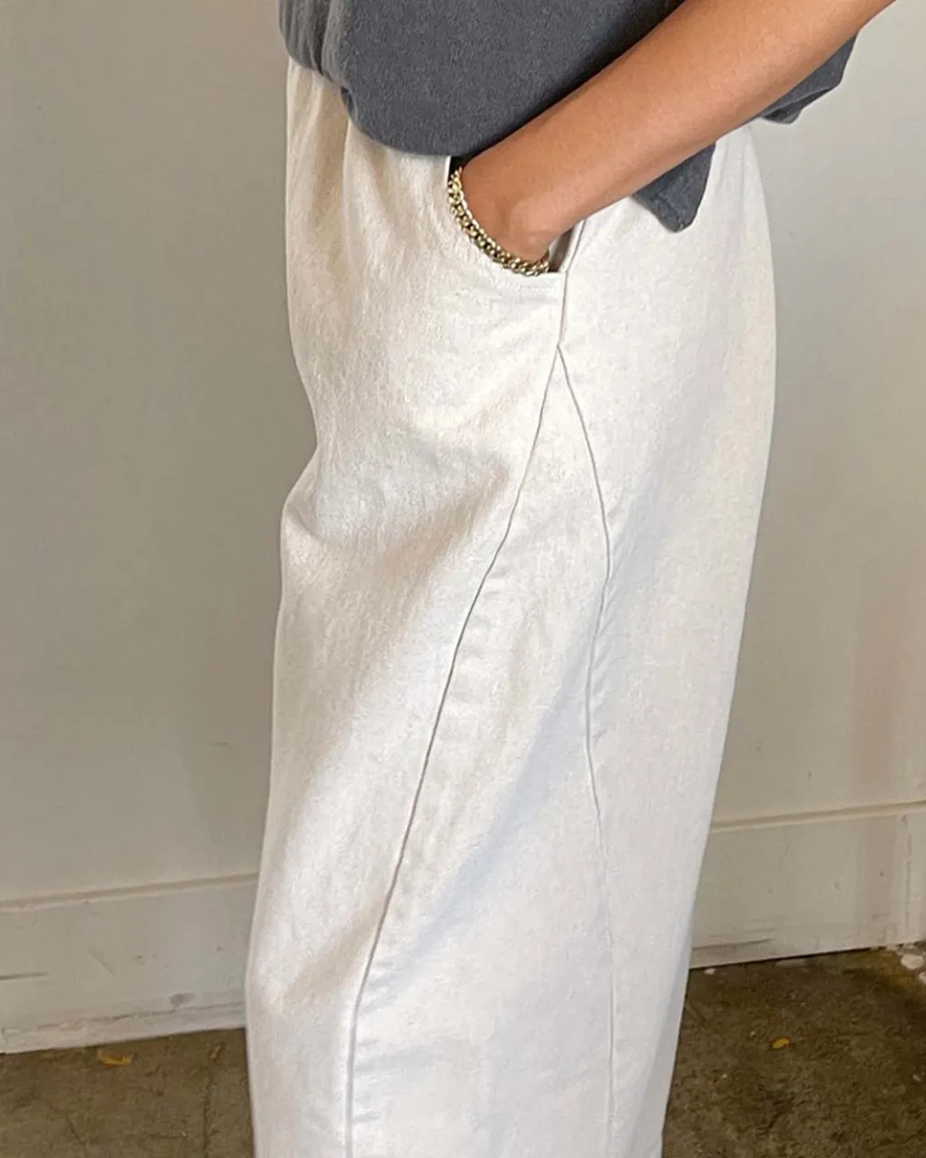 These are the pants we love to live in! They have thoughtful design details like an elastic high waist that gives you a room to breathe, slightly curved leg shape, cropped length to show off your favorite socks and shoes, unique side panels and deep pockets. The heavy-weight canvas material adds durability and gives them a structured look. They’re the perfect everyday pants, made easy to style.