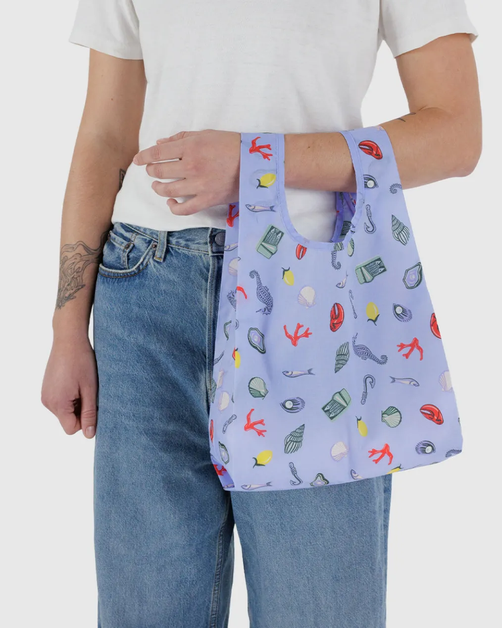It’s no secret that we love Baggu’s classic reusable bags. And we also love things that are little versions of bigger things. Like baby shoes, tiny houses, Barbie hairbrushes, and this baby Baggu! It’s the perfect size for lunches or picking up food to-go or when you only need a couple things at the store.