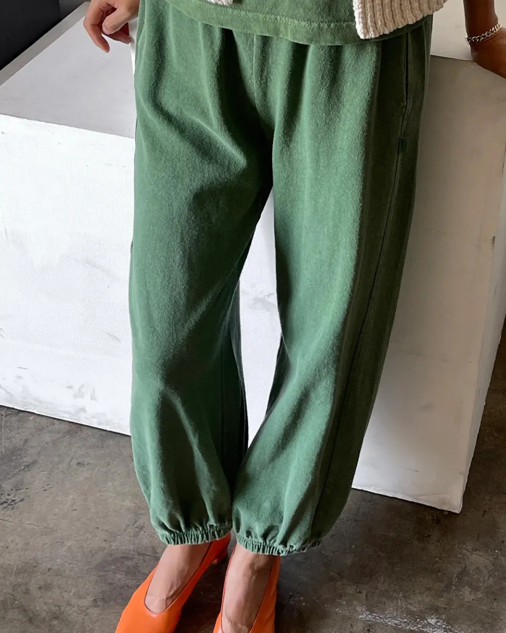 These are the pants we love to live in year round! She has thoughtful design details like an elastic leg opening that showcases any shoe, a comfortable elastic high waist, slimming side panels and hidden side slit pockets. The ideal knit pant yet comfier than your pajamas, she will be your new uniform at home, in the office, running around town and even the great outdoor