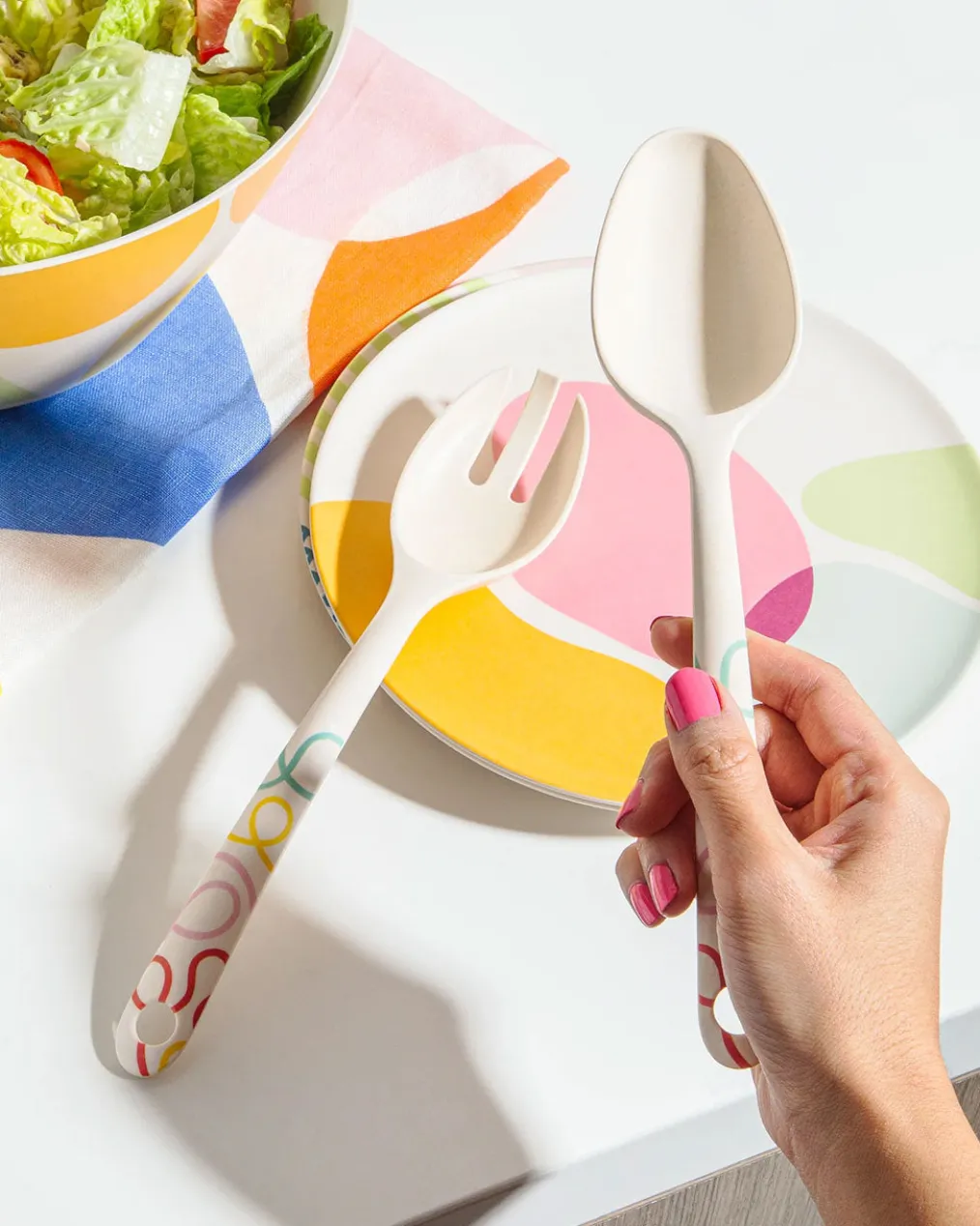 Entertain and serve in style without having to use single-serve plastic. The colorful squiggly pattern goes perfectly with the rest of our bamboo tableware and is sure to collect countless compliments from your guests.