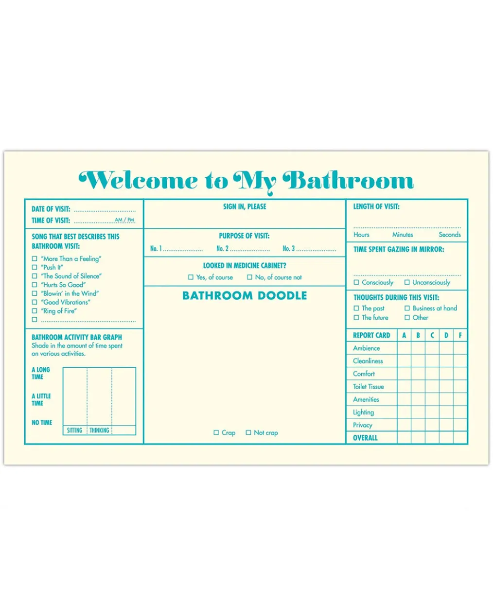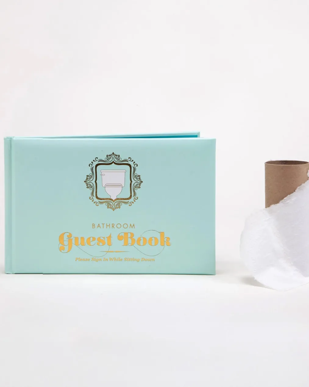 No ordinary guest book, this throne-room tome offers provocative prompts and ample doodle space to help your guests express themselves for posterity. Who hasn’t had a deep thought on the can?