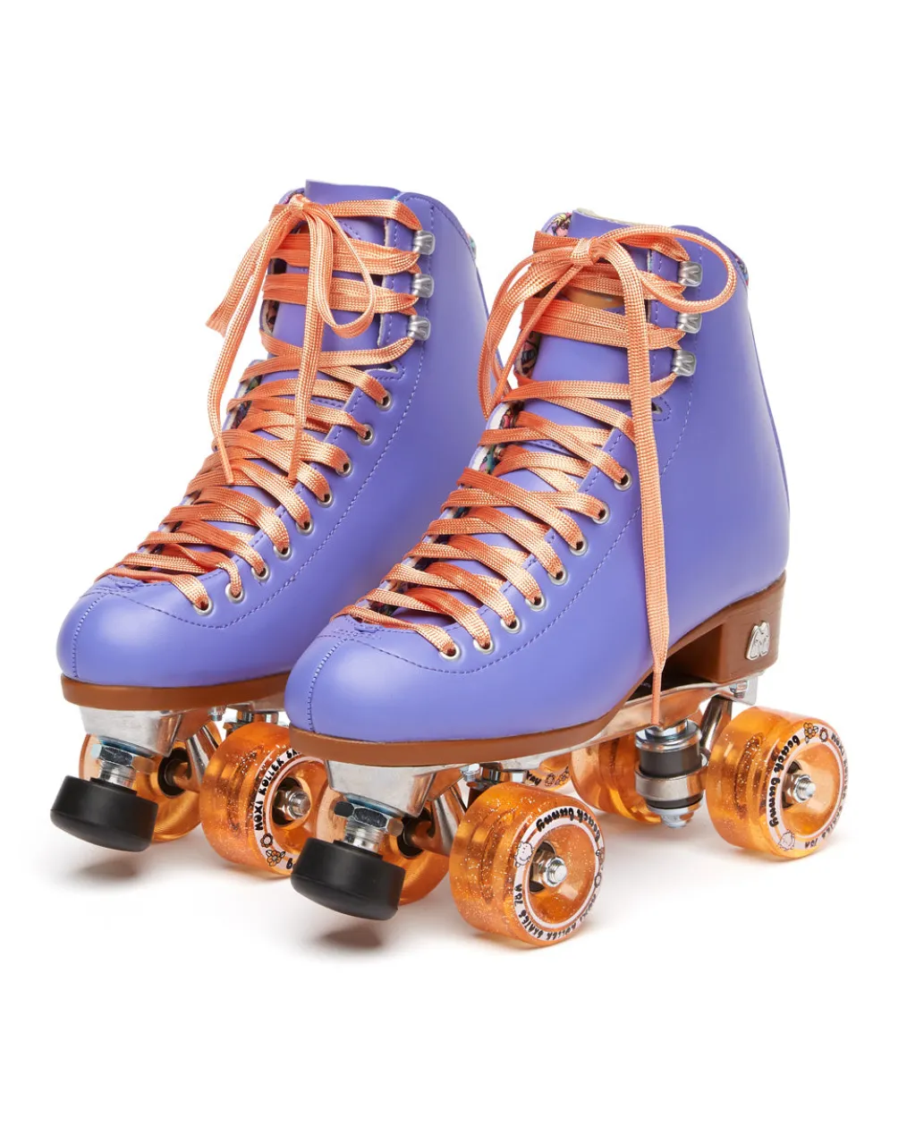 In a world of black skates for boys and white skates for girls (yawn), Moxi Skates exists to bring bright colors and fun to one of our favorite pastimes. And their new Beach Bunny style makes that fun even more accessible! With the prettiest periwinkle color, sparkly peach wheels, removable toe caps, and a pattern inside that gives us serious Lisa Frank vibes, these are a no-brainer.