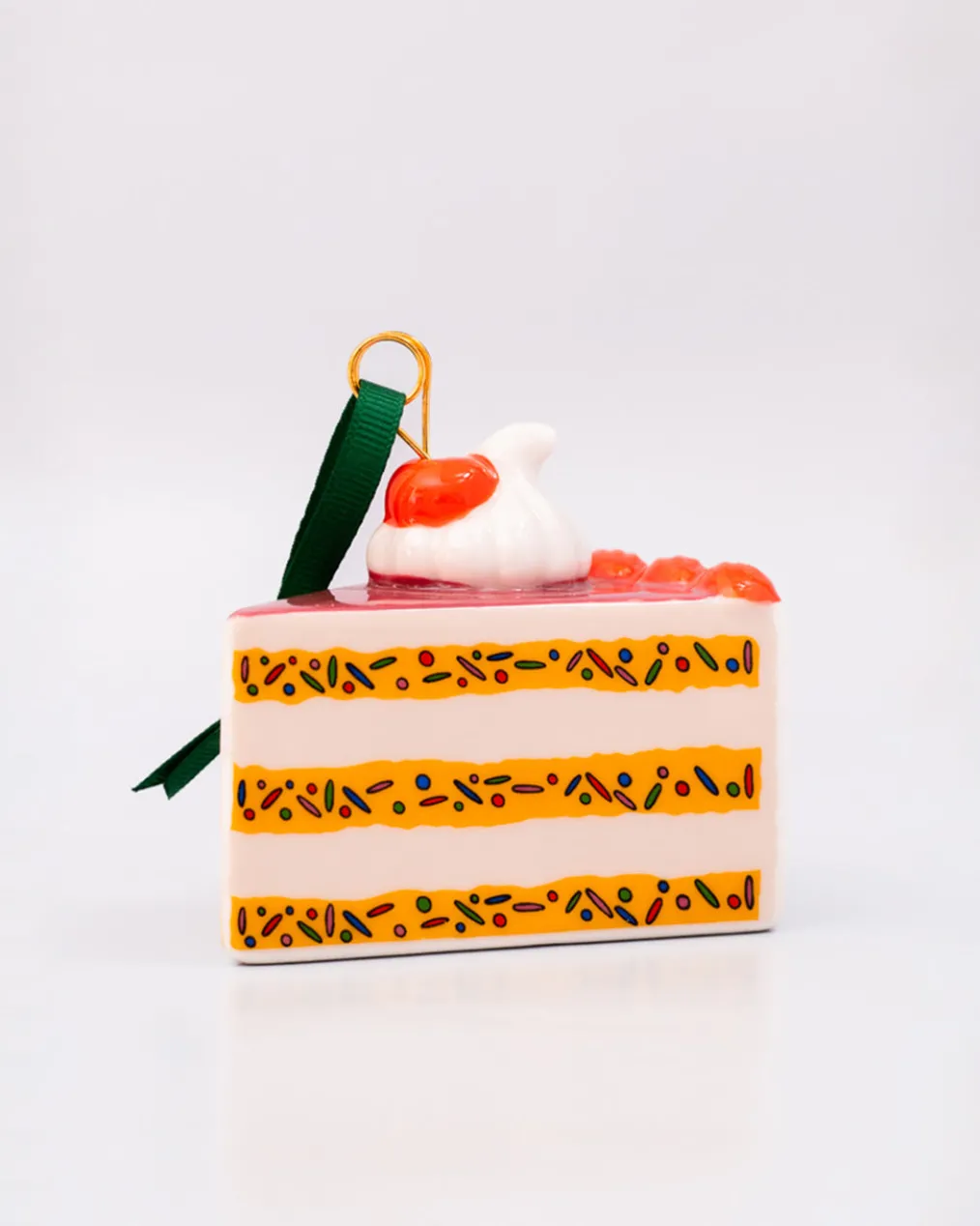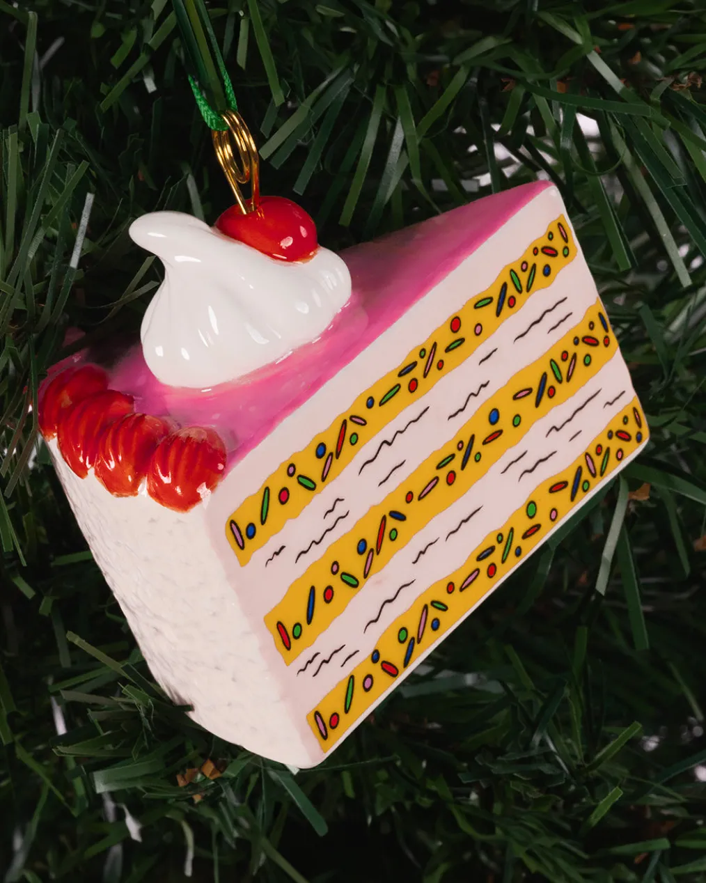 Create a cute ornament? Ah, piece of cake! This is made of ceramic and is the perfect accent for just about any tree or space that needs a little something sweet.