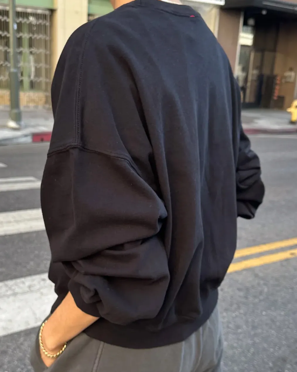 The Cali Jersey Sweatshirt blends the best of The Little Boy Tee and the Poche Top for a playful take on the classic crewneck. Crafted from 100% premium cotton jersey, it offers the lightweight feel of the Little Boy Tee, making it ideal for layering under jackets. It also borrows signature details from the Poche Top, like a ribbed crew neckline and relaxed balloon sleeves. Designed with a slightly oversized fit, it features a perfectly cropped length, creating the perfect balance of style and comfort.