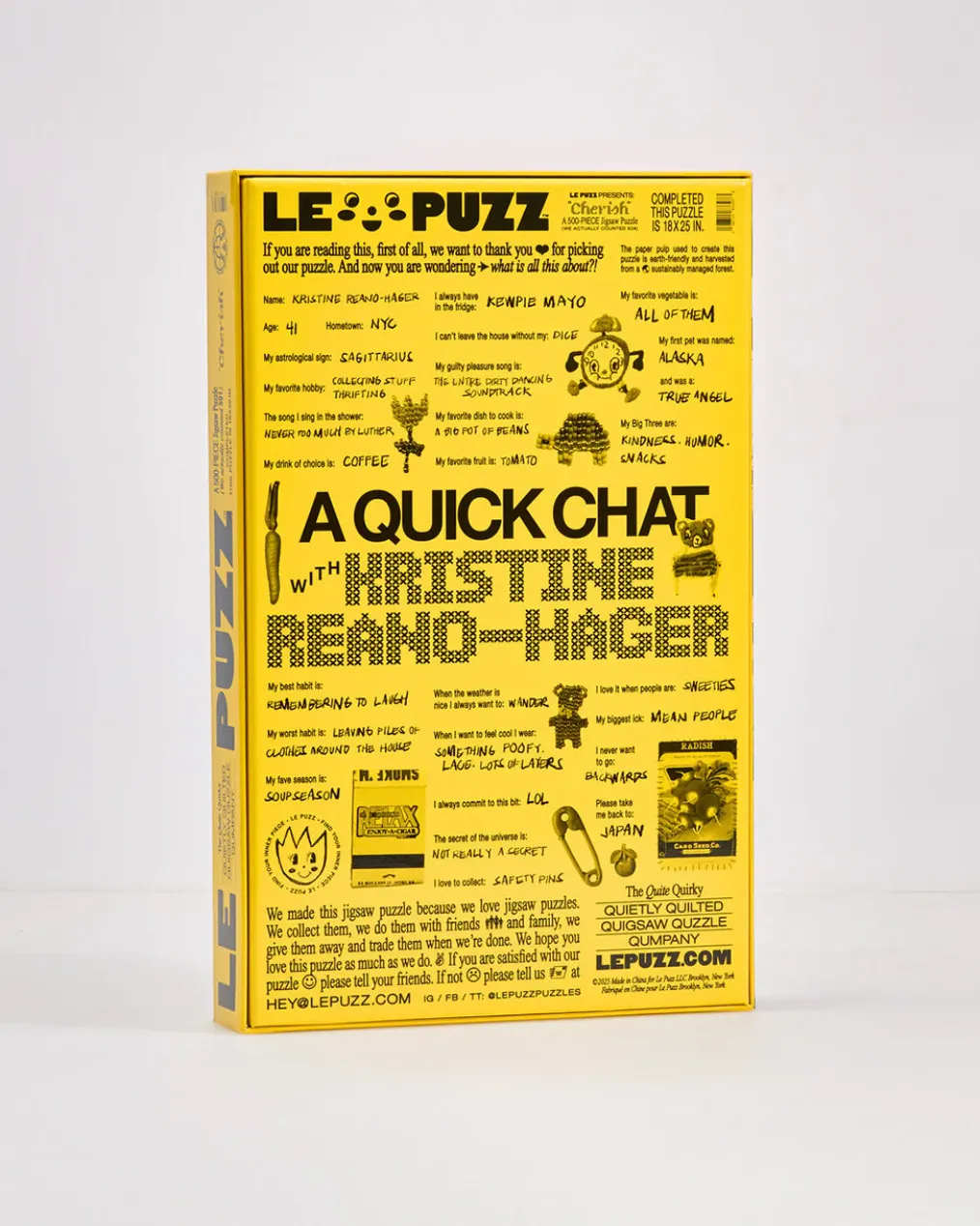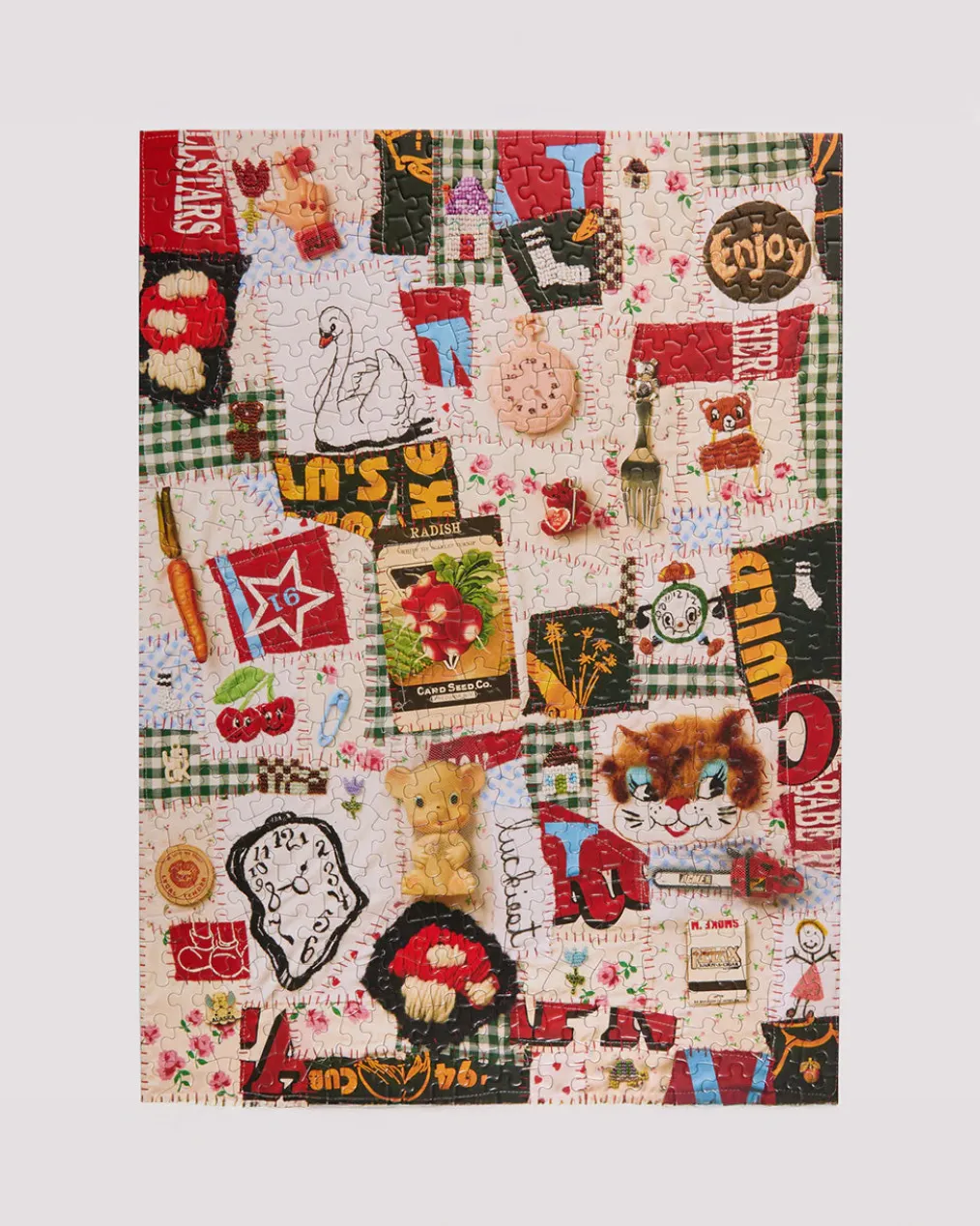 A 500-piece jigsaw puzzle made in collaboration with Kristine Reano-Hager featuring a quilt made from scraps, objects, memories and love.