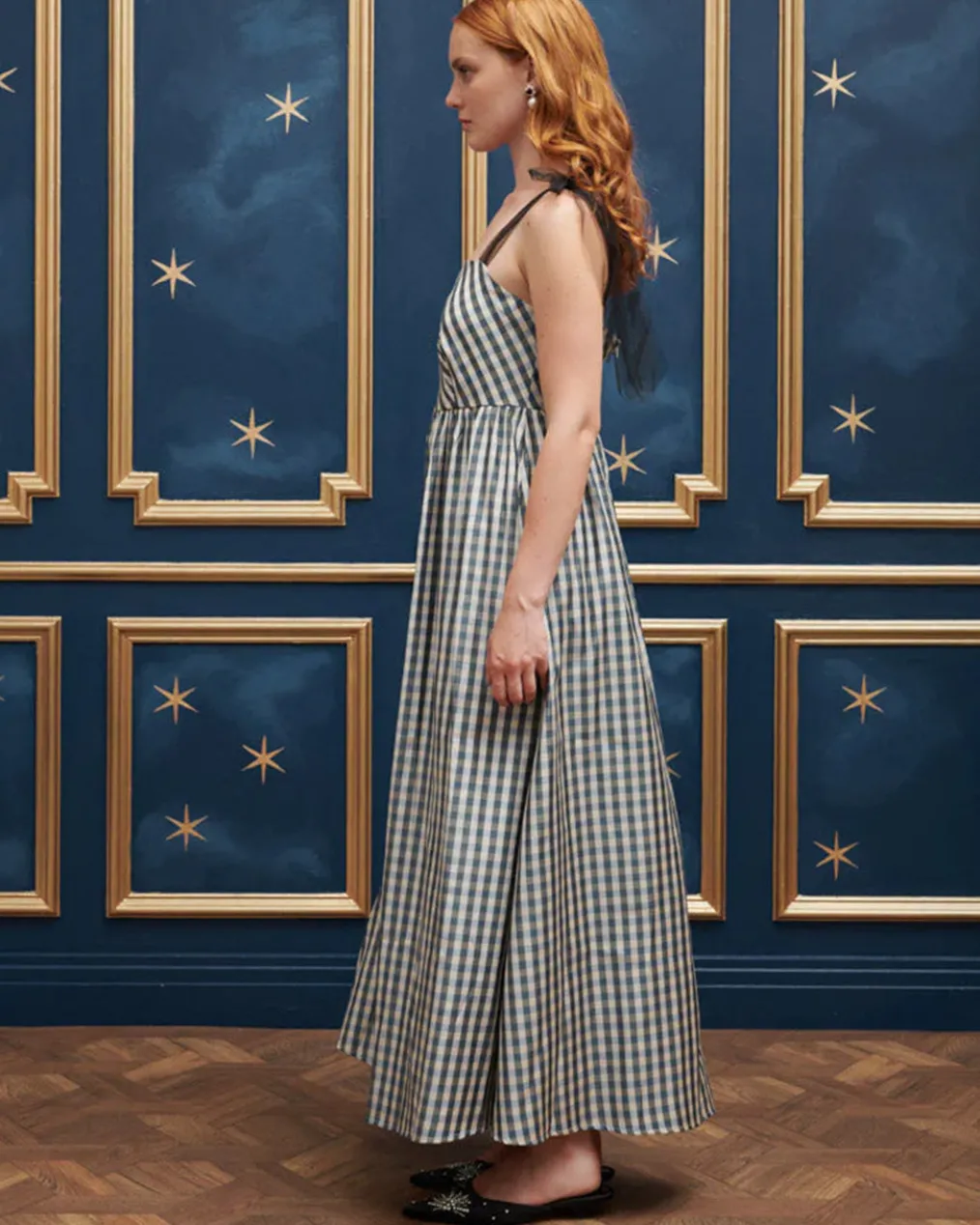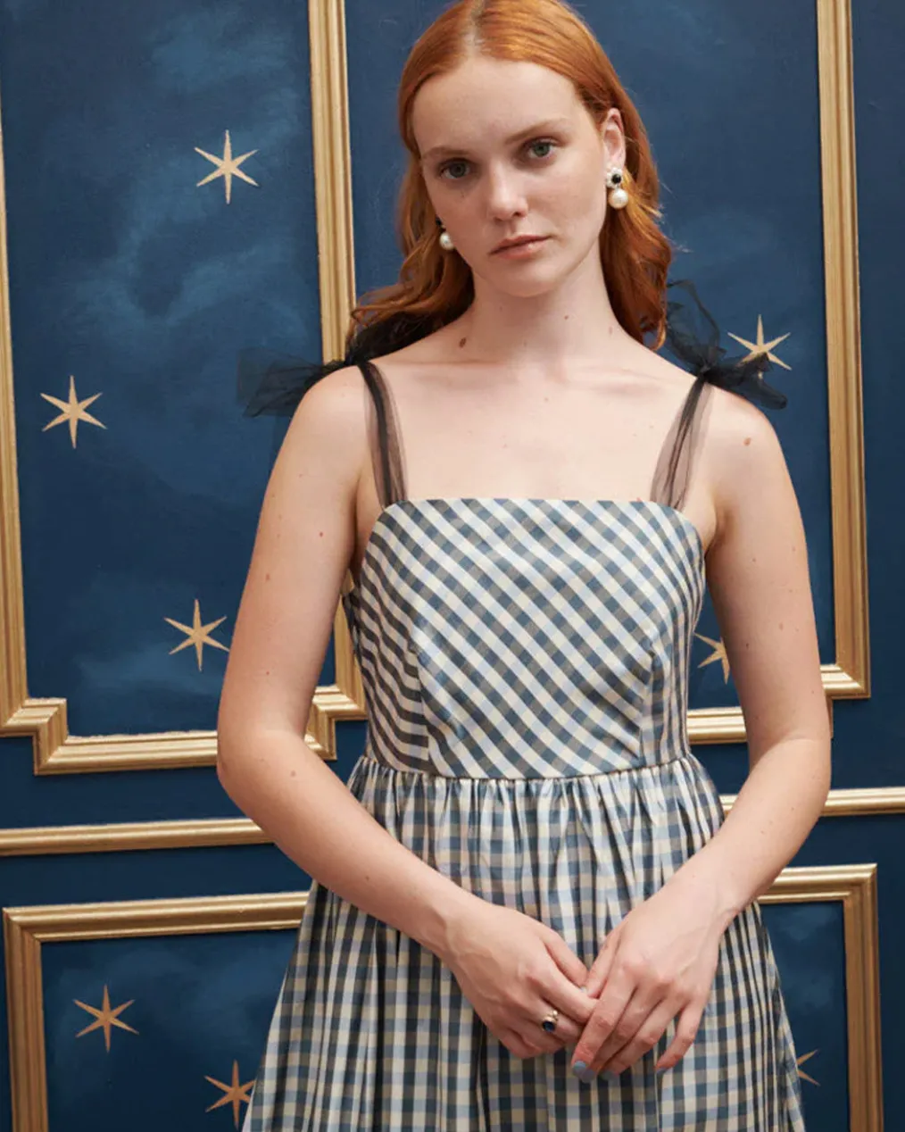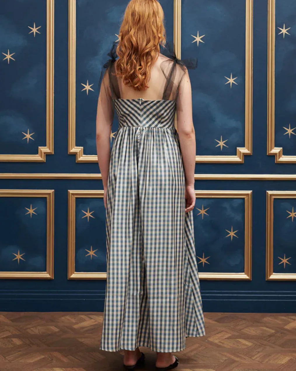 Check this out! The Cindy Check Midi Dress is a delightful dance of style and sophistication. Crafted from a chic woven check fabric, the double adjustable shoulder ties in soft tulle add a whimsical touch, making this dress perfect for playful layering. Embrace print and pattern with this enchanting midi that effortlessly elevates your wardrobe!
