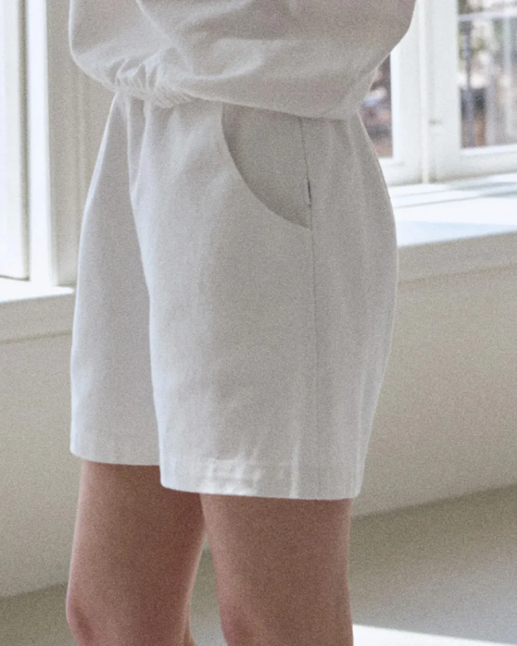 A versatile take on classic denim shorts, the City Shorts draw inspiration from the Arc Pants, featuring subtly flared panels for optimalcomfort and shape. With a high-waisted design, elasticated band, and convenient side pockets, they are a perfect wardrobe staple. Dress them up or down, and pair them with your favorite socks for a stylish touch.