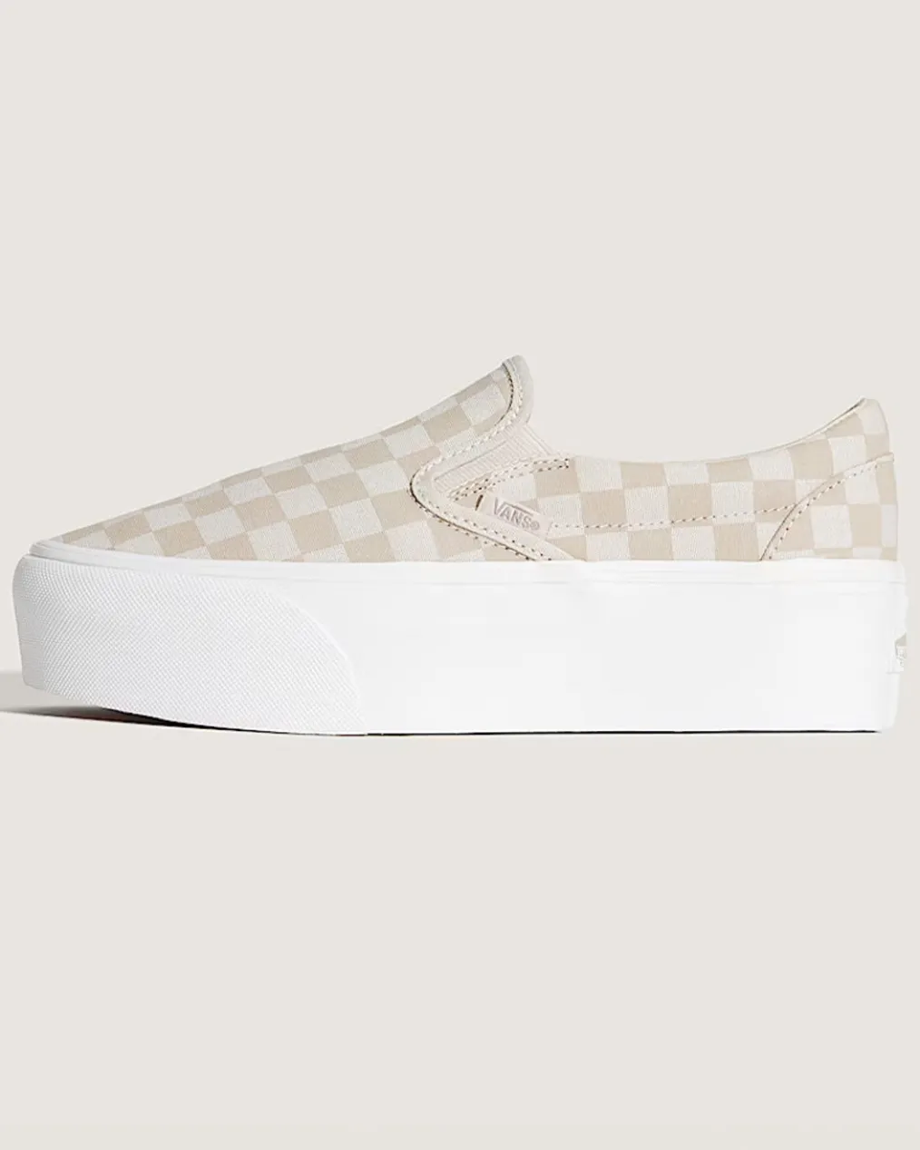 The Classic Slip-On Checkerboard Stackform refreshes Vans original slip-on silhouette with an even chunkier take on the platform aesthetic. Constructed with an exaggerated sidewall for double the height, this checkerboard platform shoe amplifies a classic favorite while offering a modern look.