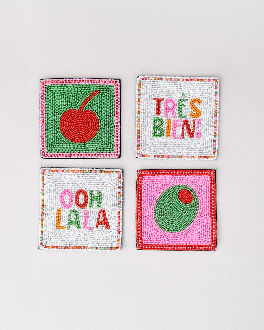 Is there anything more glamorous than setting your drink atop a beaded coaster? Made with seed beads, these come in a set of four and each one has a unique design.