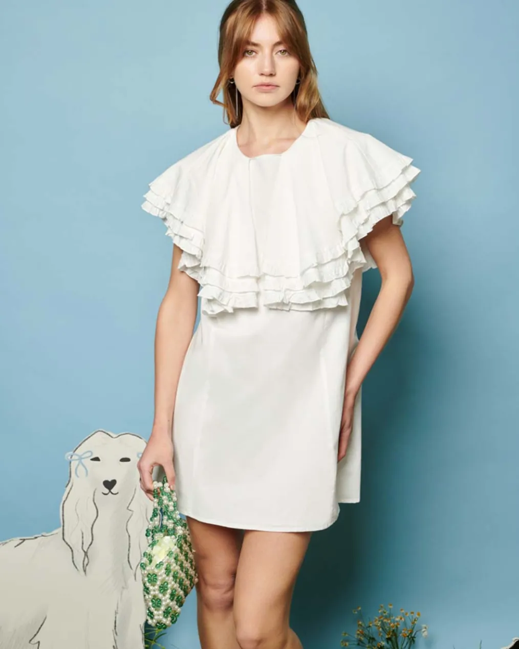 Indulge in playful sophistication with the Collie Lace Trim Mini Dress, a loose-fit wonder in soft woven fabric. Imagine yourself at a sunny park play date, the layered sleeves and delicate lace edge trim adding a touch of elegance to your summer ensemble. With its layered front creating an intriguing silhouette, this mini dress captures the essence of carefree elegance.