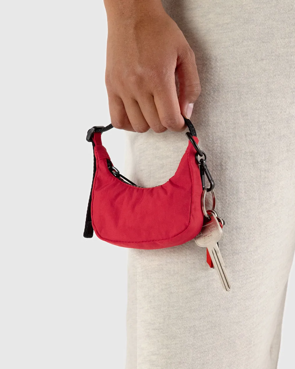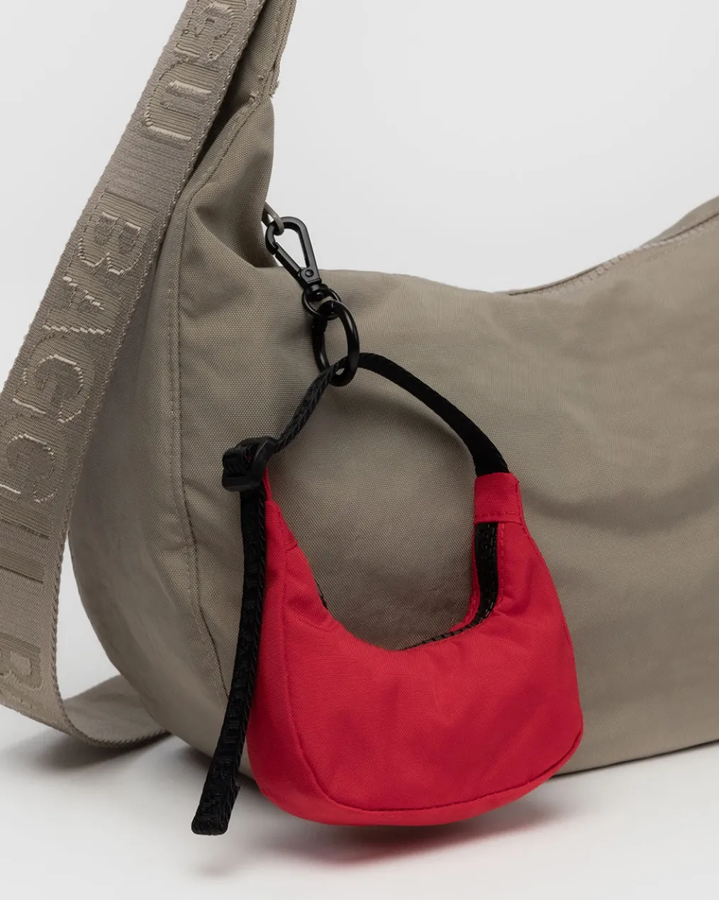 Baggu’s Crescent Bag charm decorates your larger bag while keeping small items like credit cards or lip balm close at hand.
