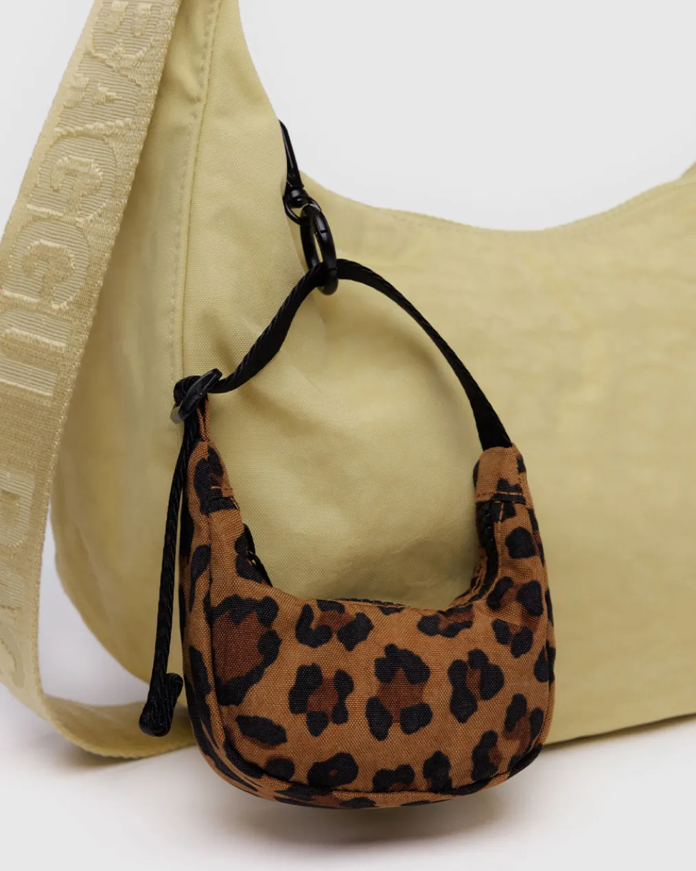 Baggu’s Crescent Bag charm decorates your larger bag while keeping small items like credit cards or lip balm close at hand.
