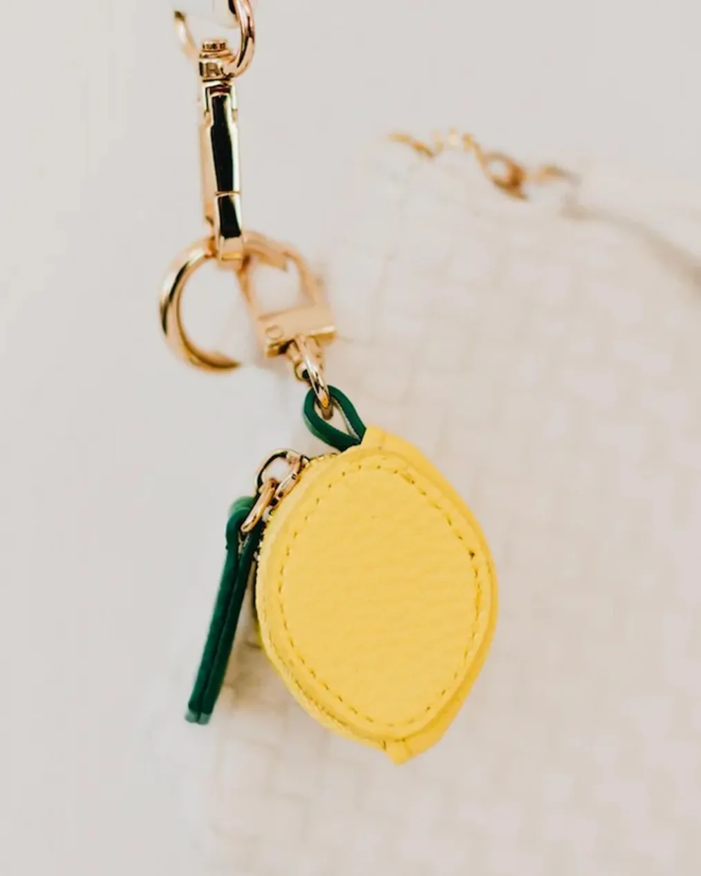 Meet your new favorite luxurious bag charm… Pretty Simple’s Cutie Fruit Bag Charm! This cute little fruit shaped bag charm will take your looks to the next level. Fruit is everywhere right now and we love that we can add it to any bag or wristlet! Store all your AirTag, coins or daily meds in the small zipper pocket for quick access!