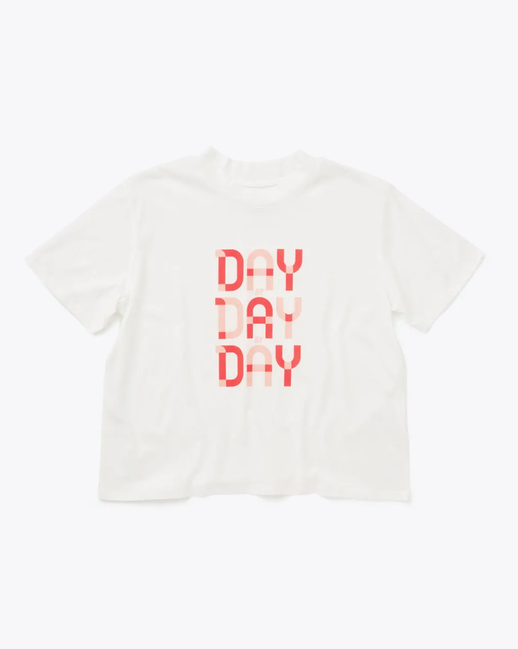 Wear this whenever you need a reminder to take things one day at a time. This t-shirt has short sleeves, a crewneck, and a slightly cropped length.