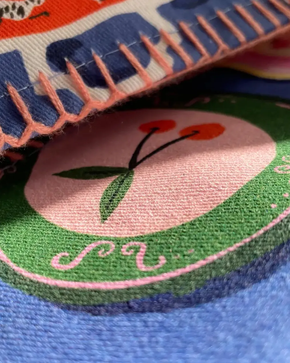 These vibrant tea towels are just the thing to add a touch of colorful flair to your kitchen, or a thoughtful hostess/housewarming gift! Woven from 100% absorbent cotton and printed with charming, hand-painted designs, each towel is embellished with contrasting embroidery along the seaming.