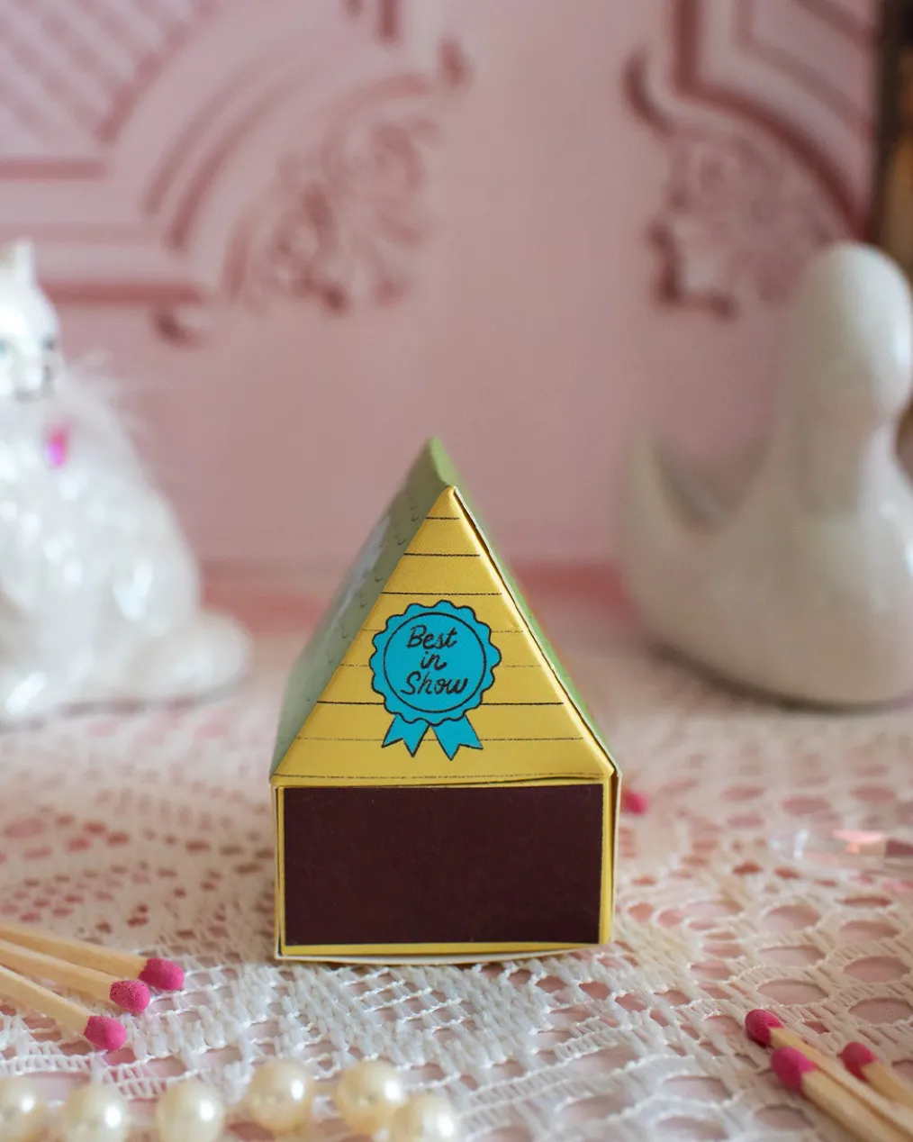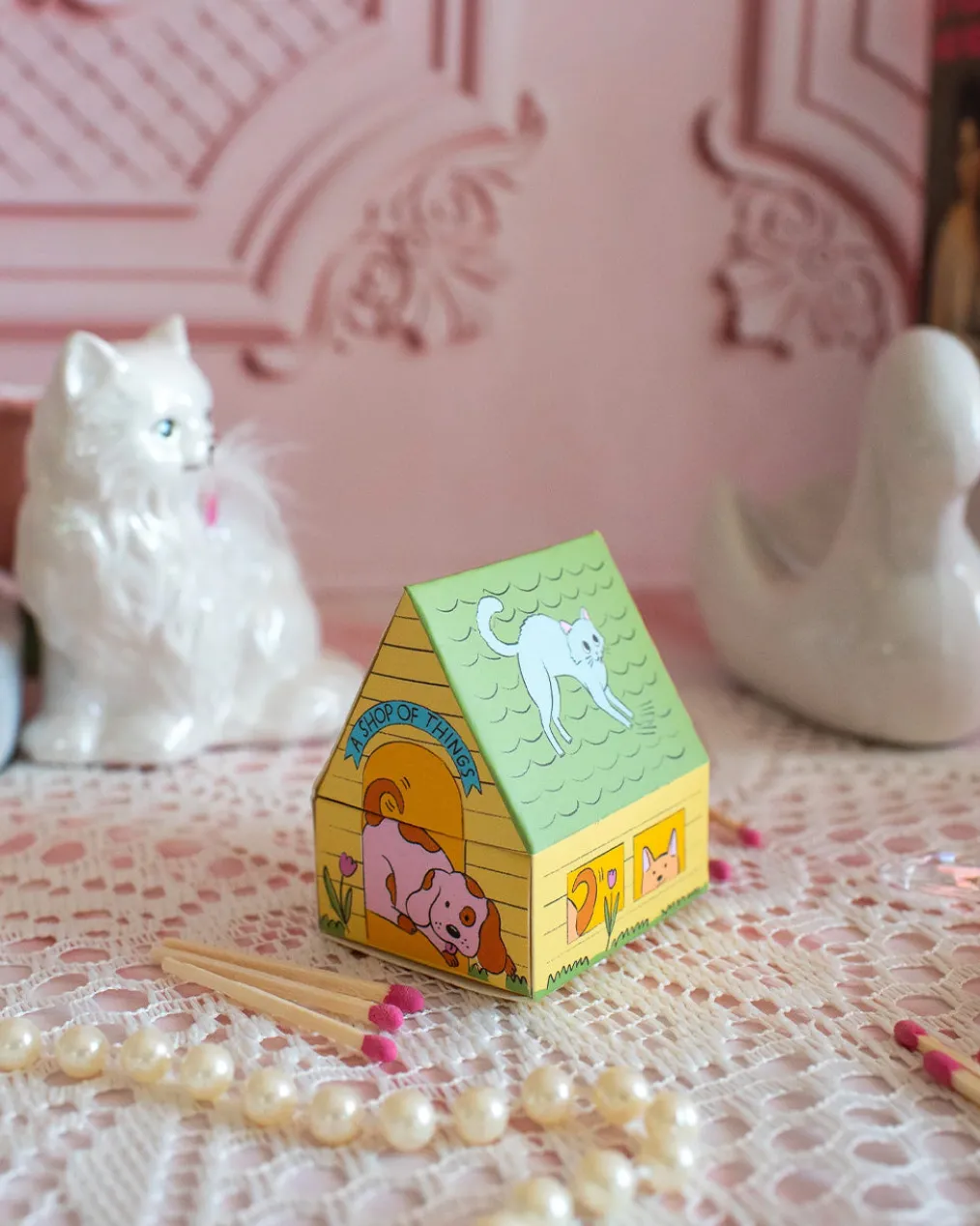 If you’re gonna be in the doghouse, we hope it’s at least a really cute one like this! These matches are in a box shaped like an adorable little doghouse and features the cutest tiny furry friends all over. The amazing art for these was done by Claire Shadomy.