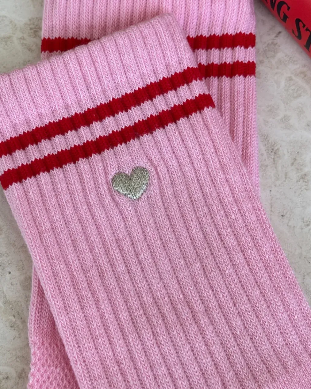 The classic Boyfriend socks you know and love, now with a little extra love. This year-round best seller maintains the perfect mix of function and fashion, creating an effortless sporty vintage charm to any outfit. It’s slightly longer than a classic crew and has a contrast double stripe. A fun, embroidered heart sits just below the stripes for an endearing touch, making them the perfect pair to gift or soak up all the love in yourself.