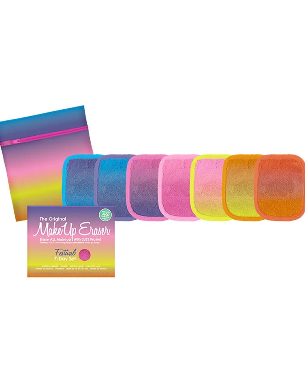 - Includes: 7 daily MakeUp Erasers & a laundry bag. Each daily MakeUp Eraser measures approx. 5 in. x 4 in.