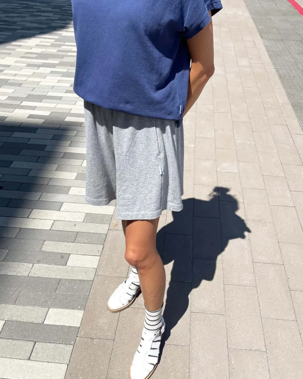 Why are most knit shorts super short, thin and tight? Le Bon Shoppe wanted to make their dream shorts inspired by retro basketball shorts. The Flared Basketball Shorts are heavy weight knit, high waisted, A-line, full coverage shorts basketball shorts. She has flattering design with a slightly shorter out seam and perfect mid thigh length.