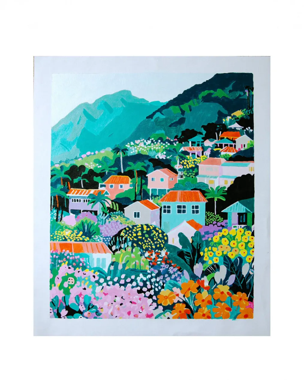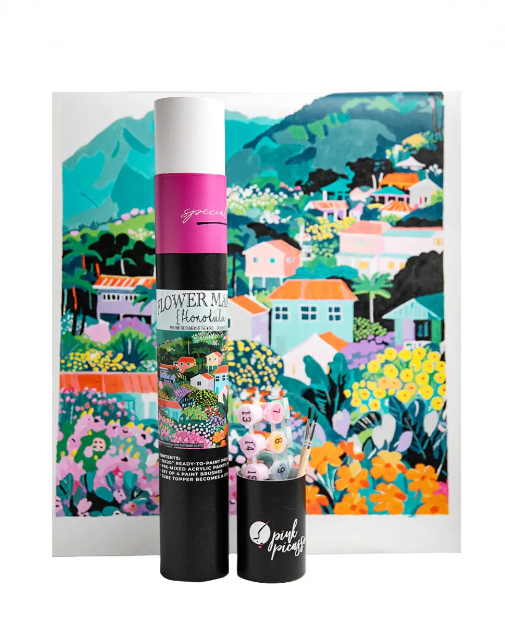 Say aloha to your next creative escape. Flower Market: Honolulu transports you to a vibrant hillside in Hawaii, where tropical blooms and colorful rooftops cascade down lush, jungle-covered slopes. It’s whimsical, bold, and joyfully modern — part of the brand-new Flower Market Collection.