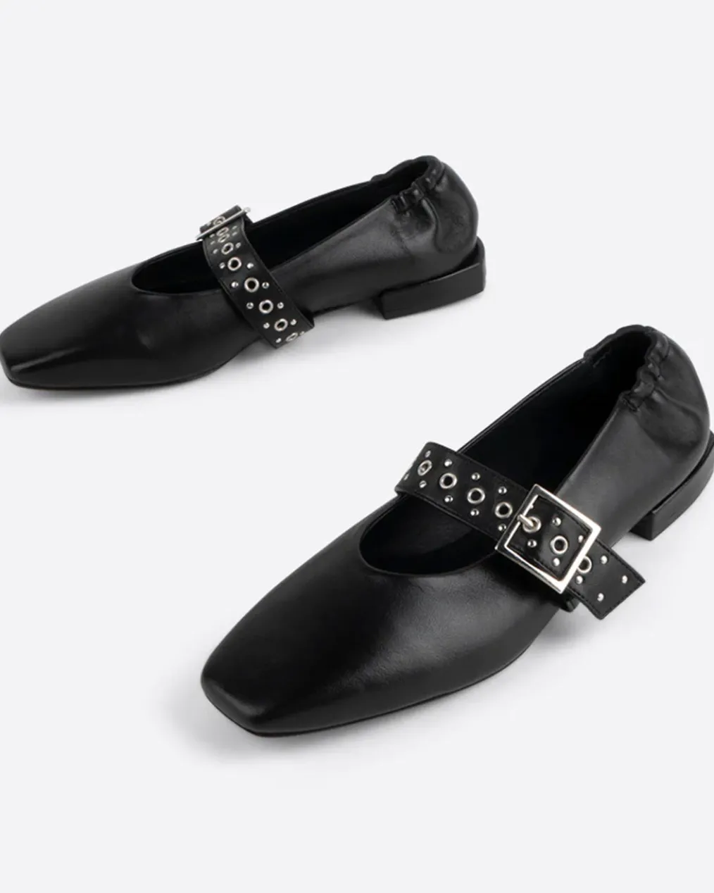 Intentionally Blank is wild about this new update to their best-selling PEARL! The FORUM Mary Jane was created in Spain out of leather from a LWG (Leather Working Group) certified supplier. This square toe ballet flat has an adjustable studded strap and elasticized heel making it elevated for styling, but comfortable and easy to break in.