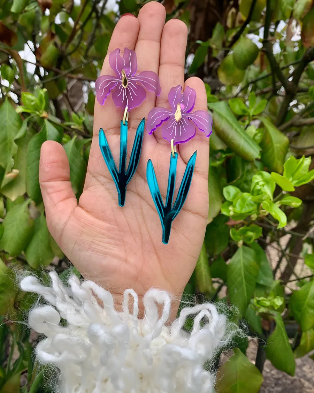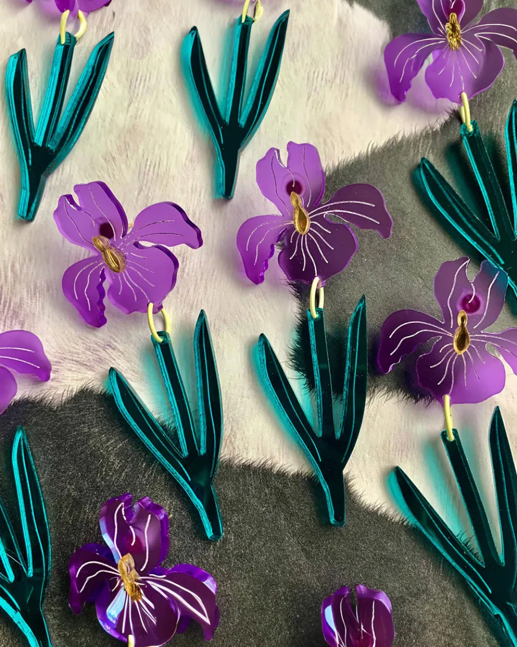 These earrings are inspired by some of our favorite floral paintings by Van Gogh. They are laser cut, hand assembled, and finished with gold-plated, hypoallergenic hardware.