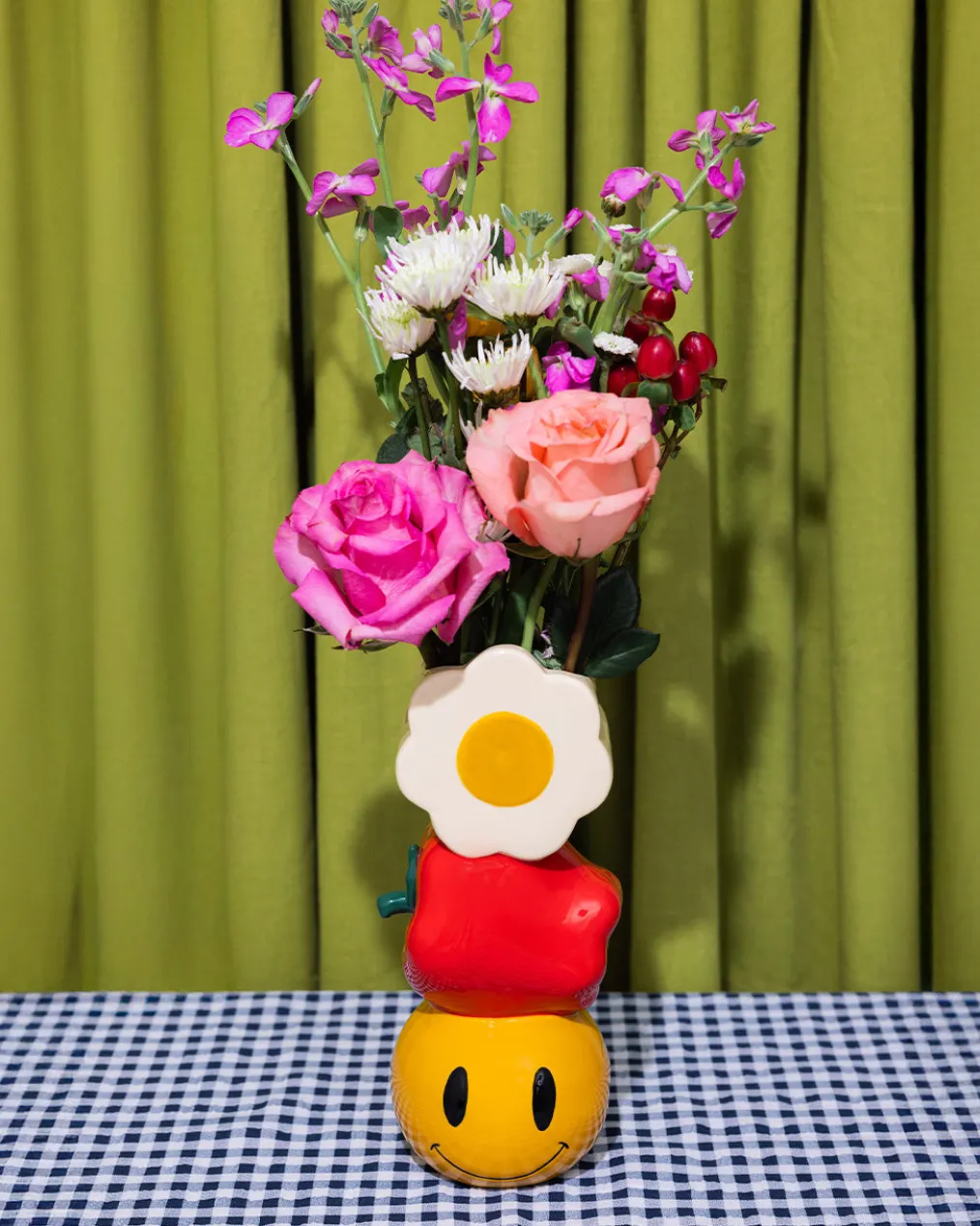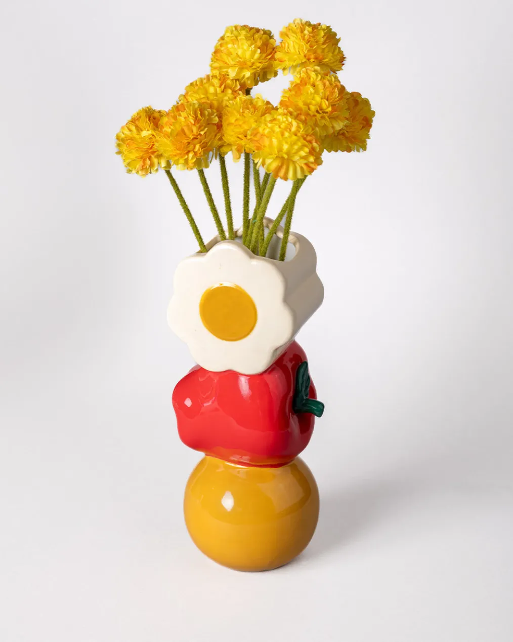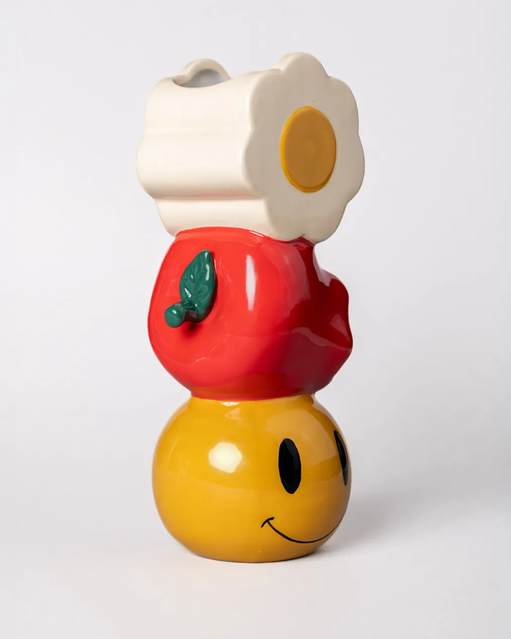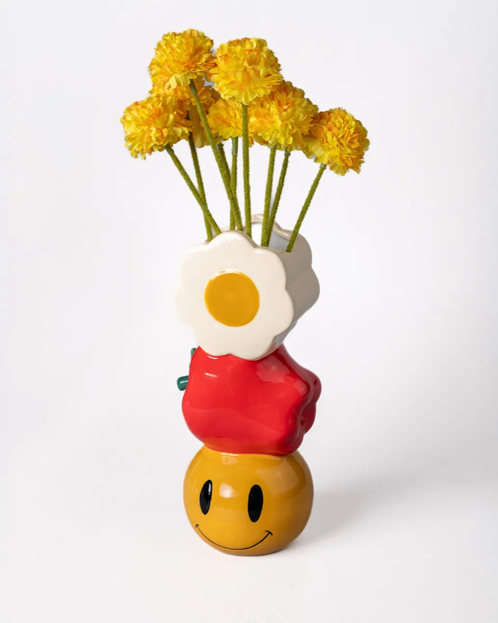 We’re not sure why, but a daisy, apple, and smiley face just make sense together. This is a ceramic vase that will look so good on your kitchen table, book shelf, or desk.