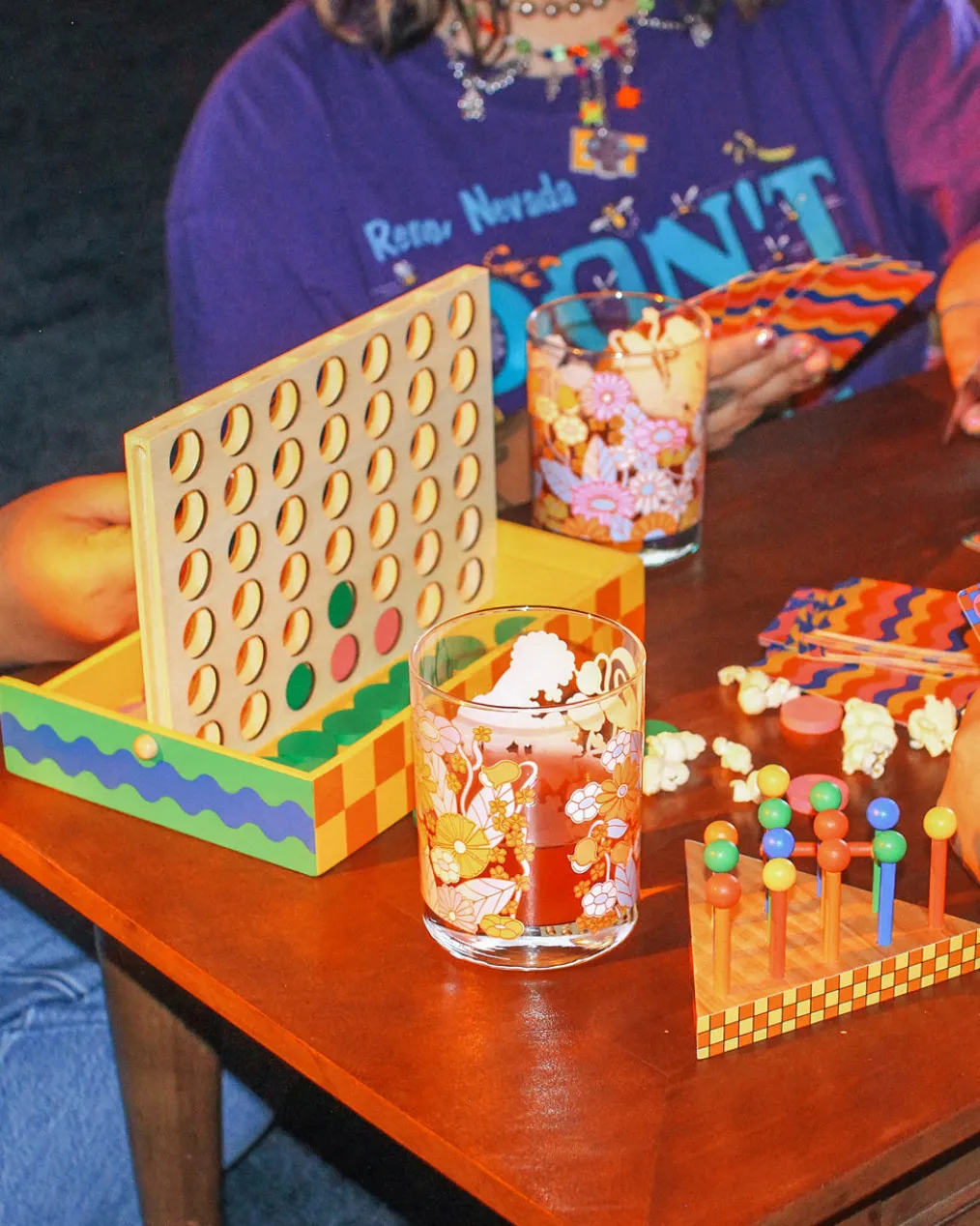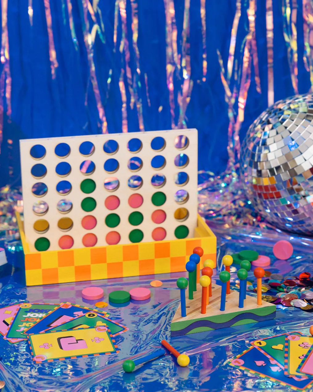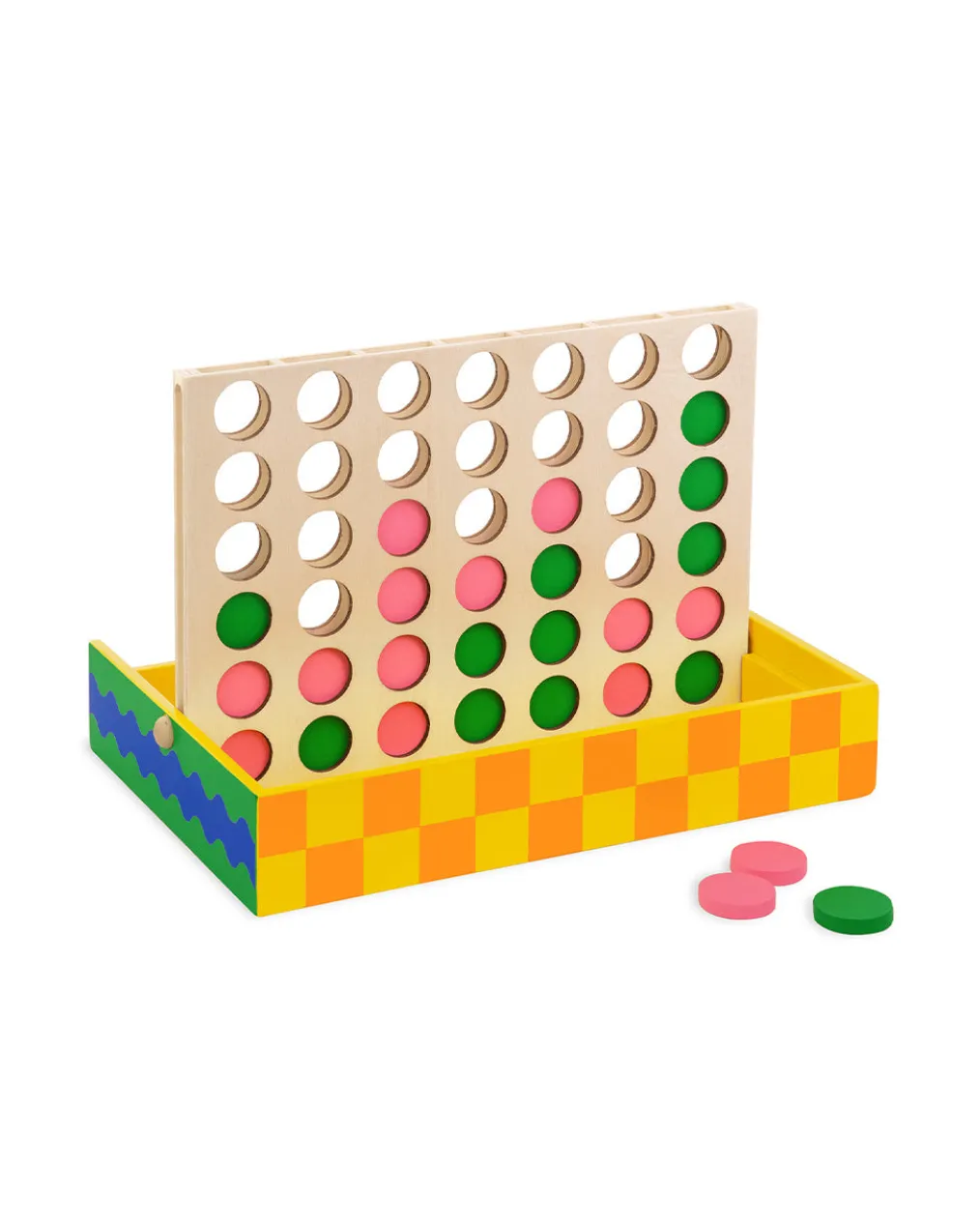 Let the games begin! This 4-in-a-row set comes with a wooden gameboard (that doubles as a storage box!) and 42 wooden game pieces.