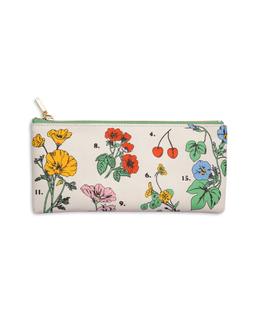 The best home for all those pencils or pens (or whatever you want—it can hold a lot more than just writing utensils). This pouch is made from a smooth leatherette and has a gold zipper and green lining on the inside.