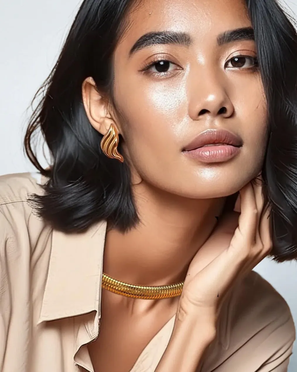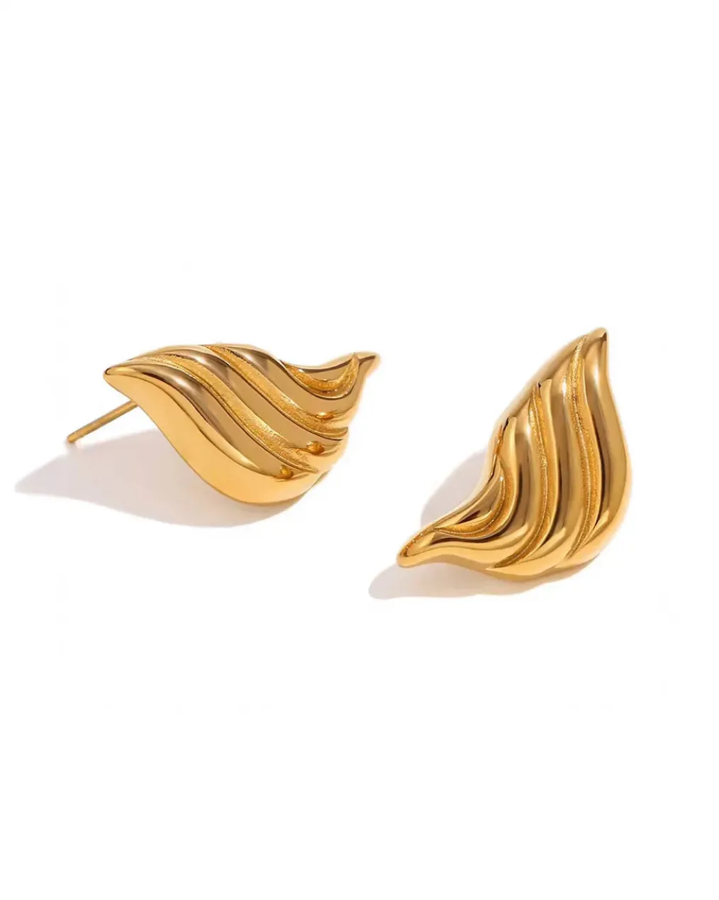 Get your ears in on the button inspired earring trend with these wave-like statement earrings in a sleek and shiny 18K gold plated stainless steel. They are also hypoallergenic and tarnish free!