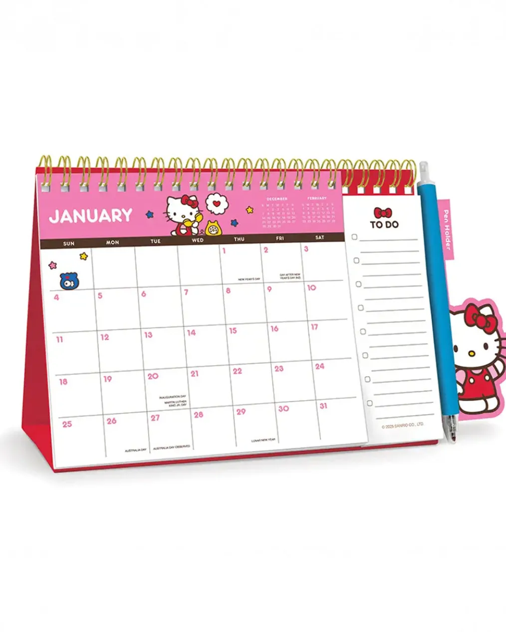Brighten up your workspace with the Hello Kitty Playful Pink 2026 Easel Desk Calendar, a charming and functional addition to any desk. This delightful calendar features the iconic Hello Kitty character in a vibrant pink design, making it a perfect choice for fans and collectors alike. Whether you choose to lay it flat or stand it upright, this calendar offers versatility and style.