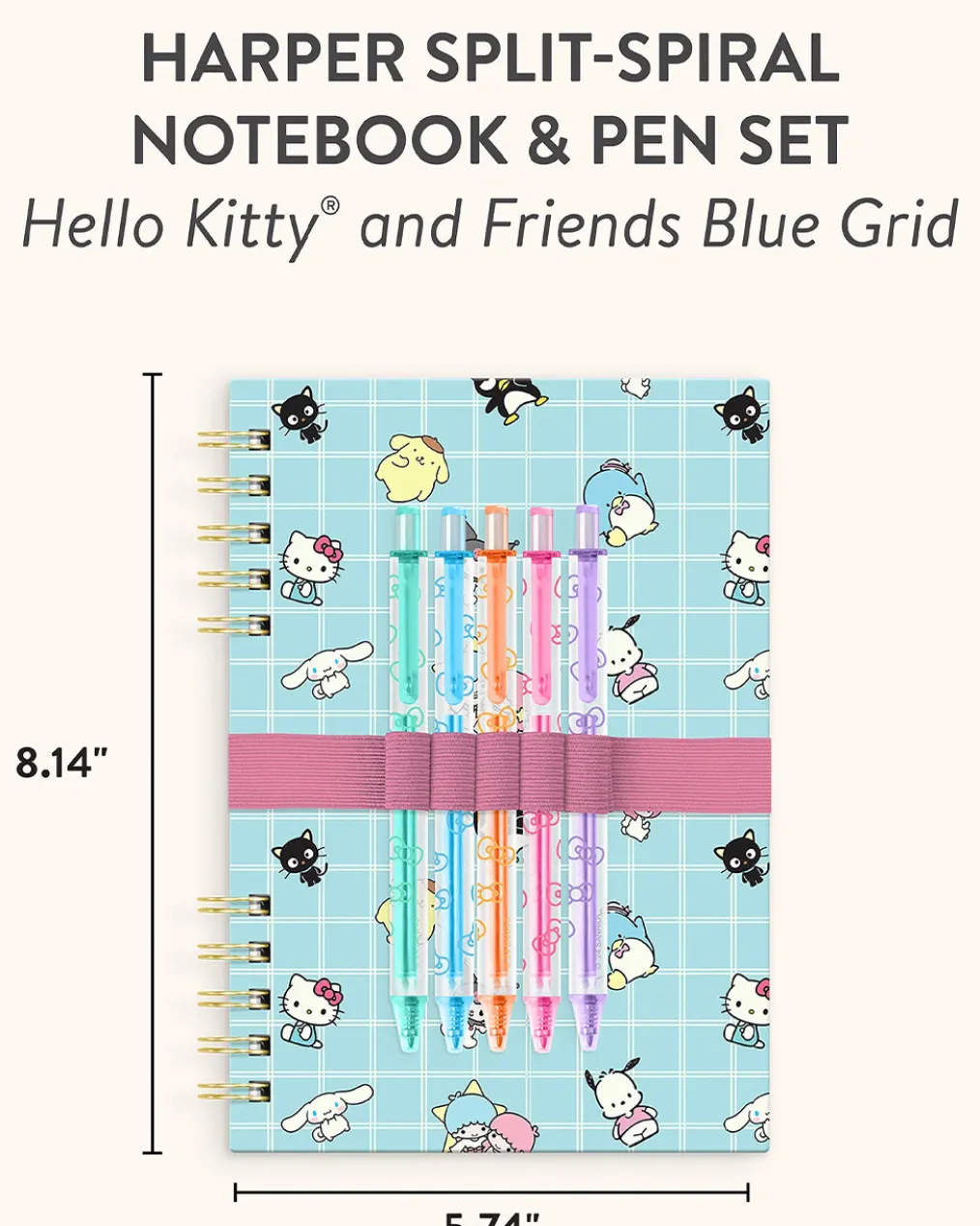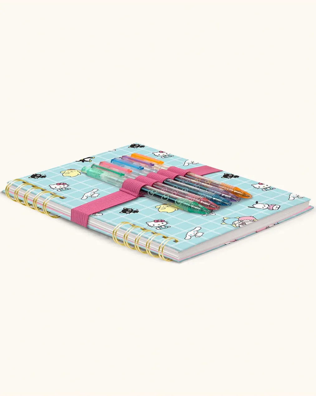 Never lose another pen again! This 192-page hardcover notebook, featuring your favorite Sanrio characters, comes with 100 gsm paper and convenient elastic loops on the cover stocked with five multicolored pens—use as is or swap ’em out with your personal faves. Whether you’re taking notes in class or mapping out your next big adventure, this journal keeps your writing tools and beloved Sanrio characters right where you want them!