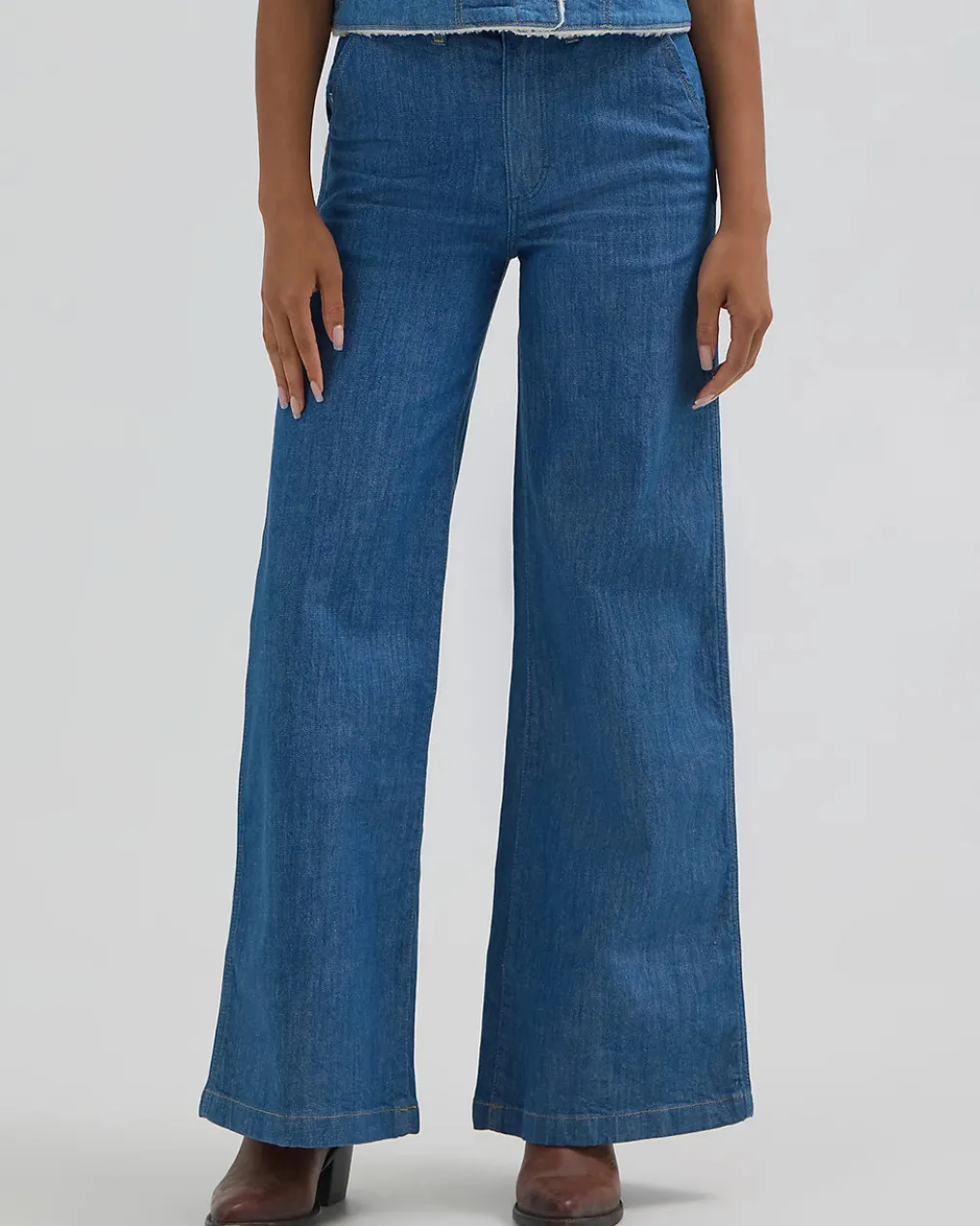 Once you try Wrangler’s Women’s High Rise Trouser Jean, you may never want to wear slim or skinny again. These denim trousers take the wide-leg look to a whole new level from the thigh down, but they still show you off with a hugging high-rise waist and fitted seat. They’re crafted from a comfortable fabric blend with just a hint of stretch. Best of all, you have all the heritage details behind you, including the five-pocket styling, “W” embroidery, and a Wrangler® logo patch.