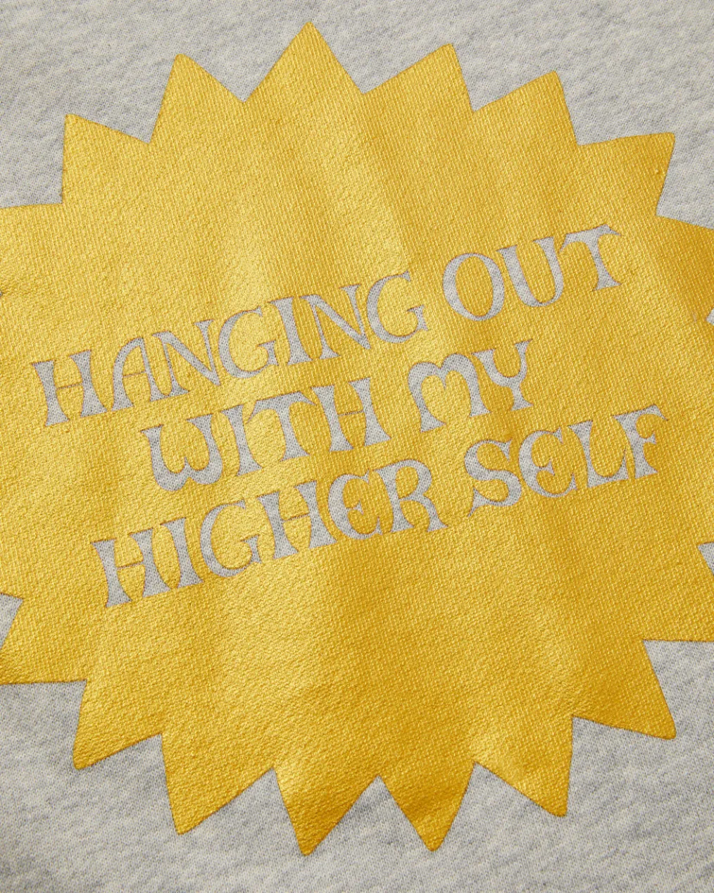 We call dibs on hanging out with your higher self when you’re done. This soft, comfortable long sleeve sweatshirt has oversized voluminous sleeves and a fuzzy flocked design.