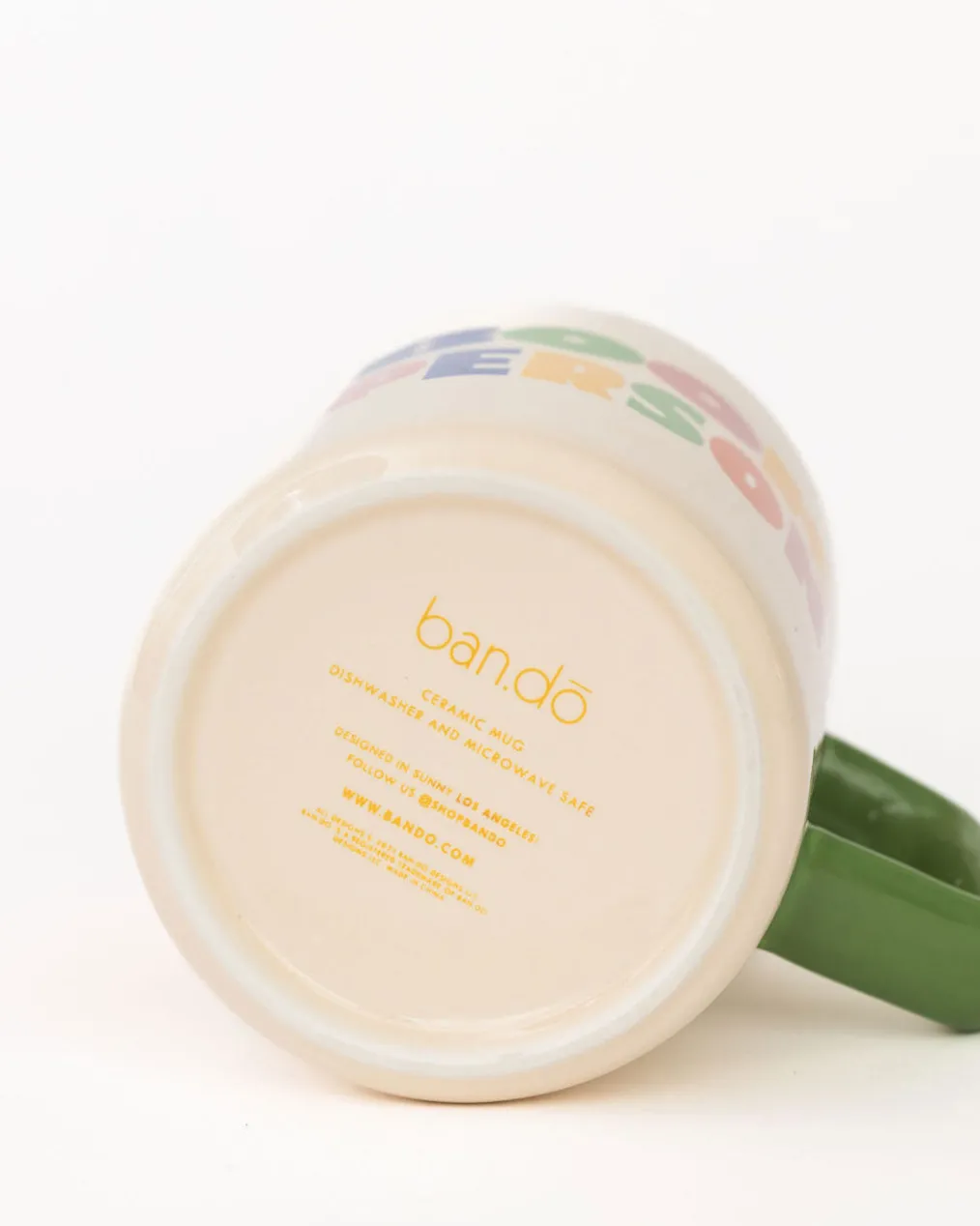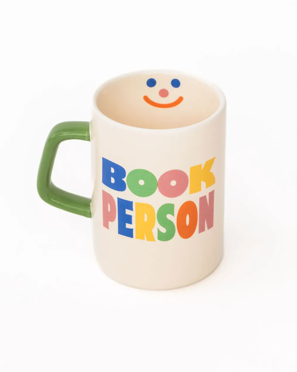 Because your love of books should be shared with the world. This ceramic mug features a colorful design and a surprise smile on the inside.