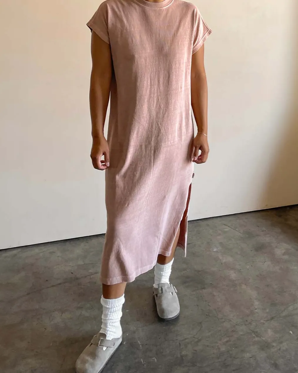 She is a hybrid of Le Bon Shoppe’s bestseller Her Dress and Jeanne Tee. Slightly oversized muscle tee dress with a fun high side slit, she will have you living in style and ease all summer long. Take her with you on all your fun getaways, long weekends exploring new places and lounging days at the beach