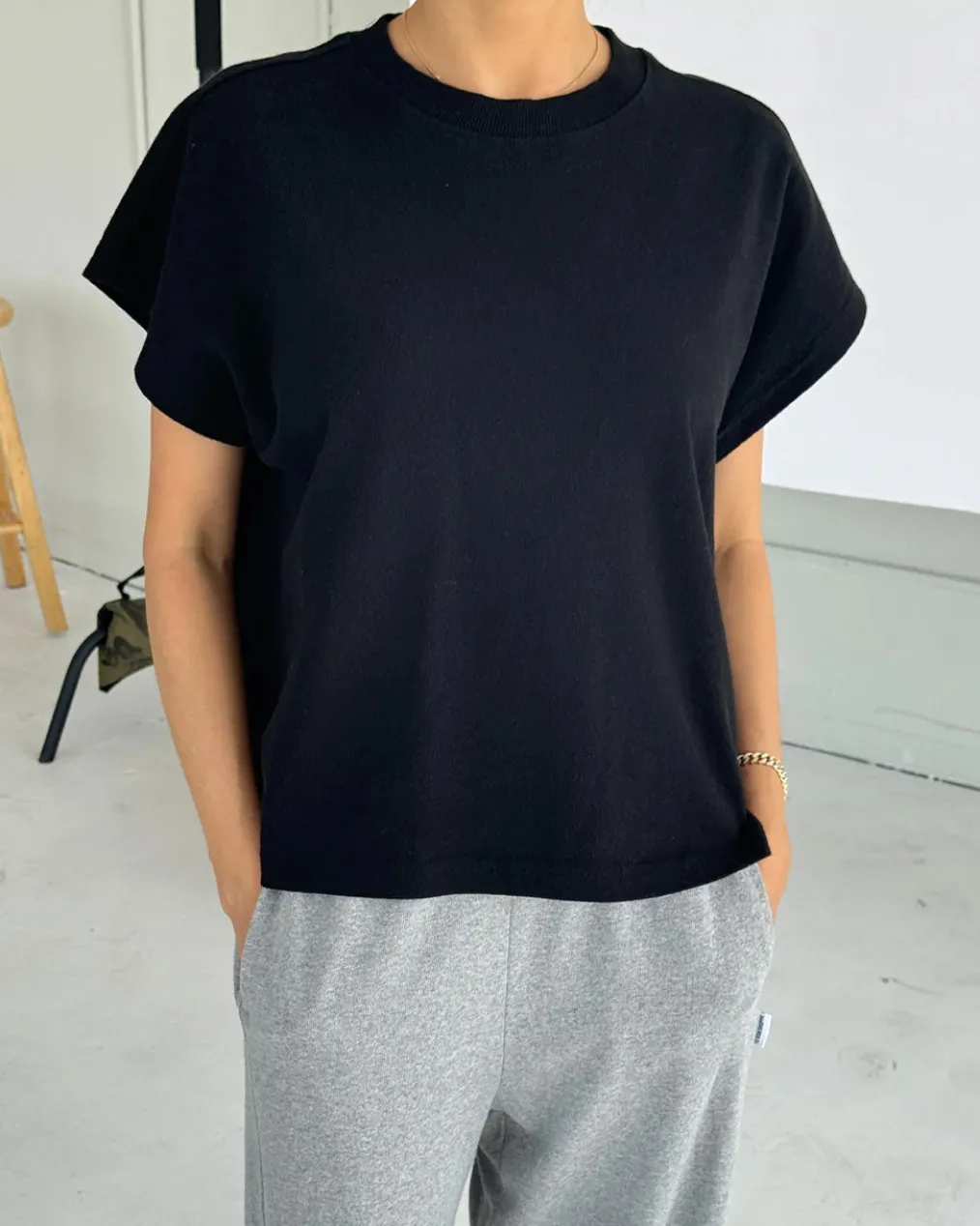 Jeanne Tee is Le Bon Shoppe’s perfect muscle tee. She features a shorter length to pair perfectly with high waisted bottoms but still give enough coverage for mid-rise bottoms and just the right amount of off shoulder dolman sleeve. She has a high crew neck with an extra wide neckband that adds to her signature charm.