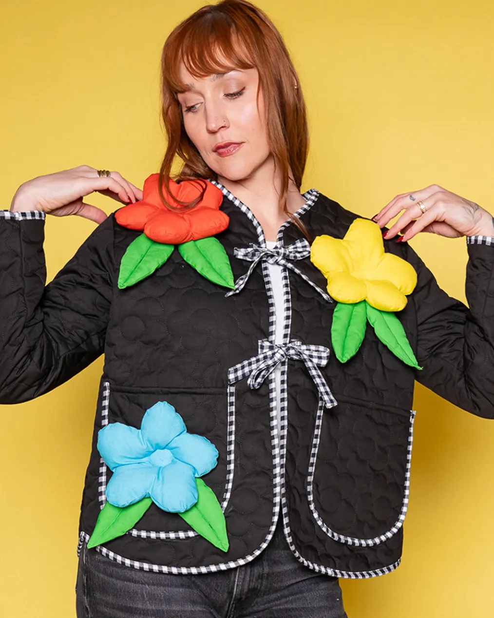 The Joey jacket is your perfect fall companion! Made of 100% cotton, its quilted with the cutest floral motif and adorned with 3D puffy flowers. Lined with gingham for some extra flair, the Joey jacket is your new go to!