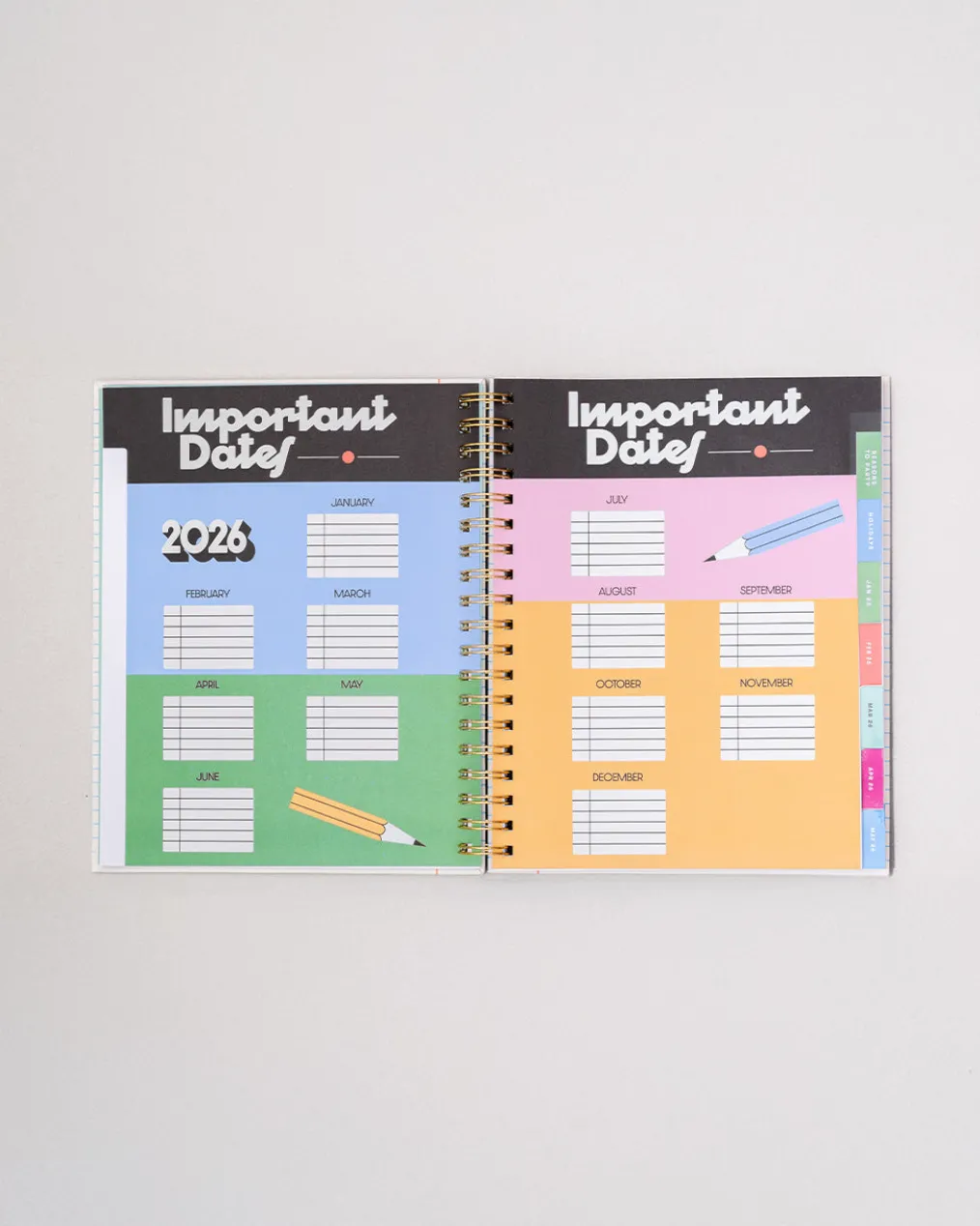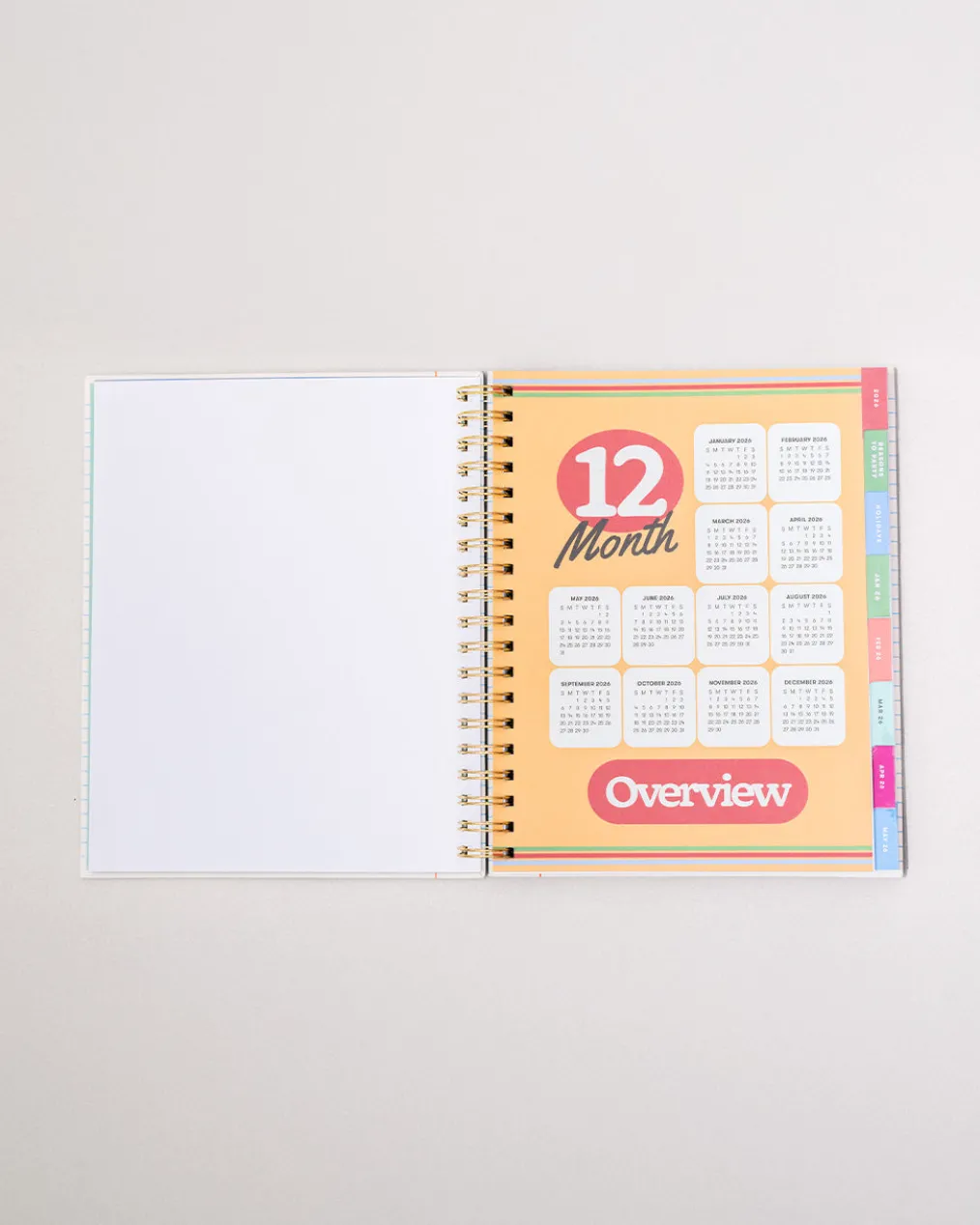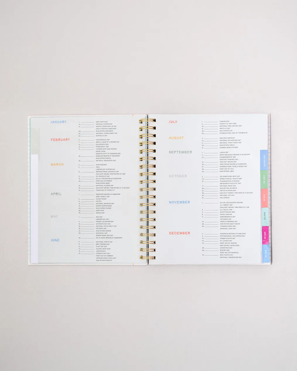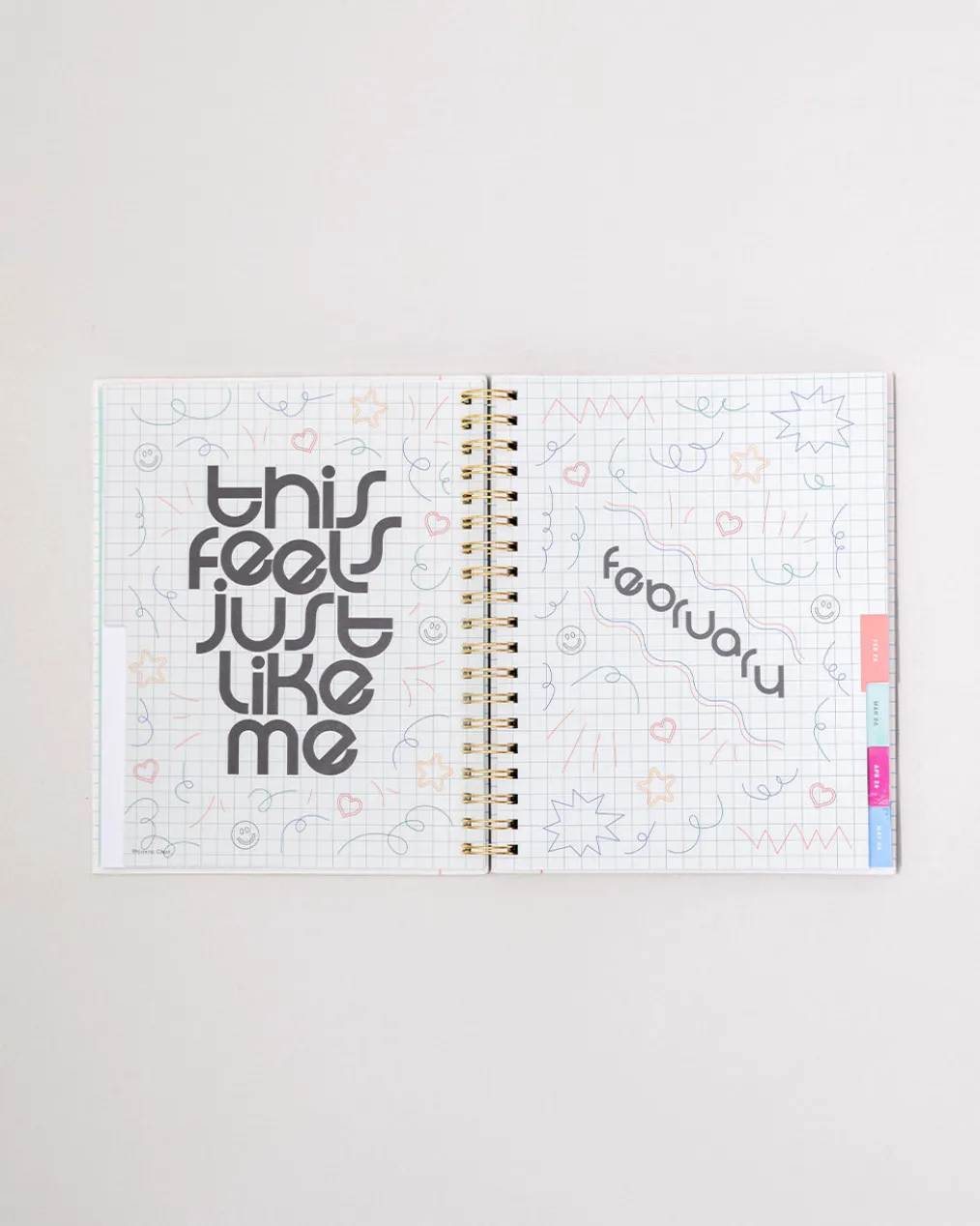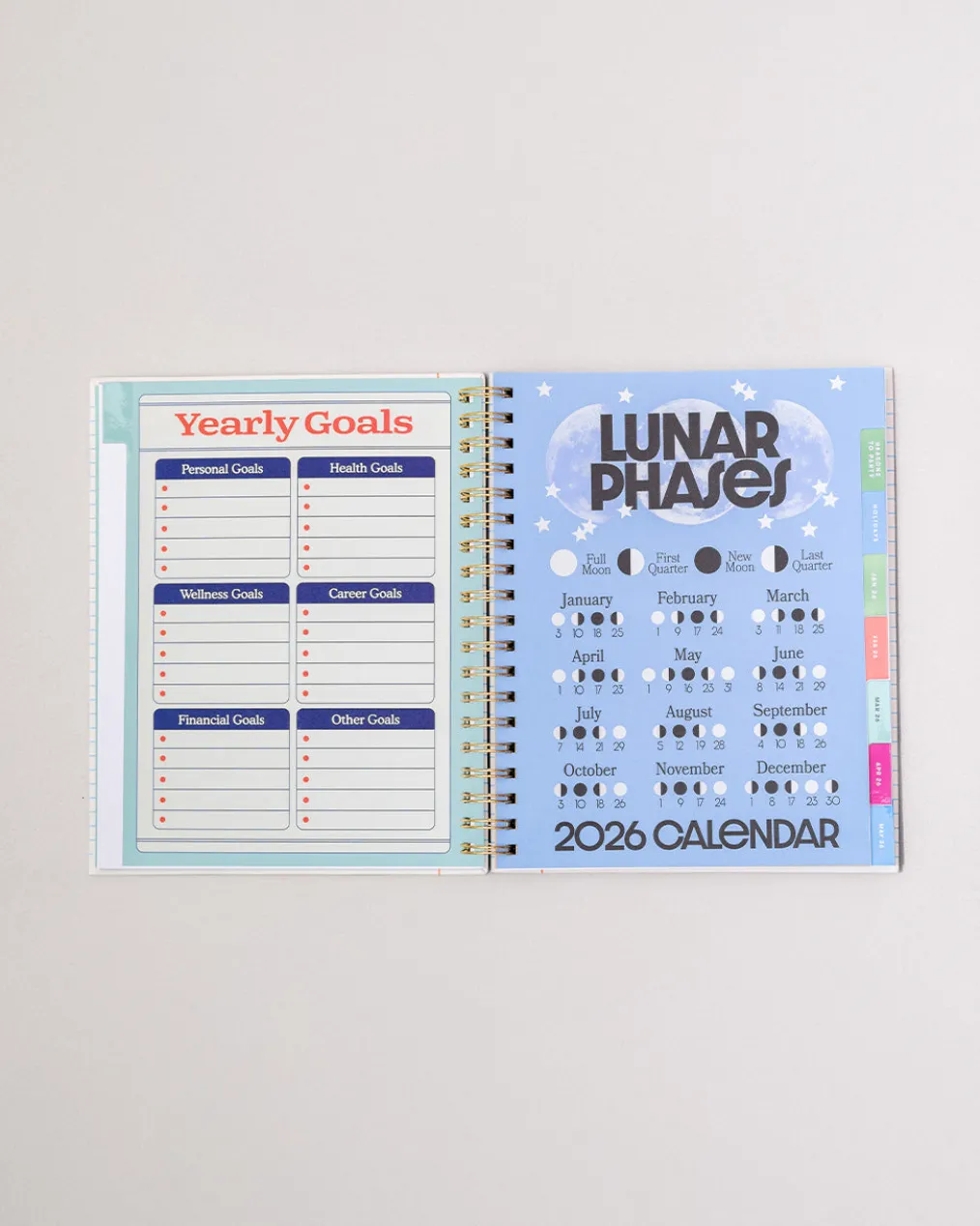 Can a planner really better your life in every single way? This one is designed to do exactly that. Meet the ban.do planner! Inside you’ll find year, month, and week views. Plus, lots and lots of amazing extras like artwork, stickers, notes pages, a coloring page, and a book tracker page! This one’s in our large size with wire-o binding.
