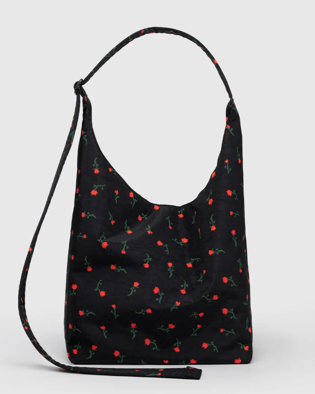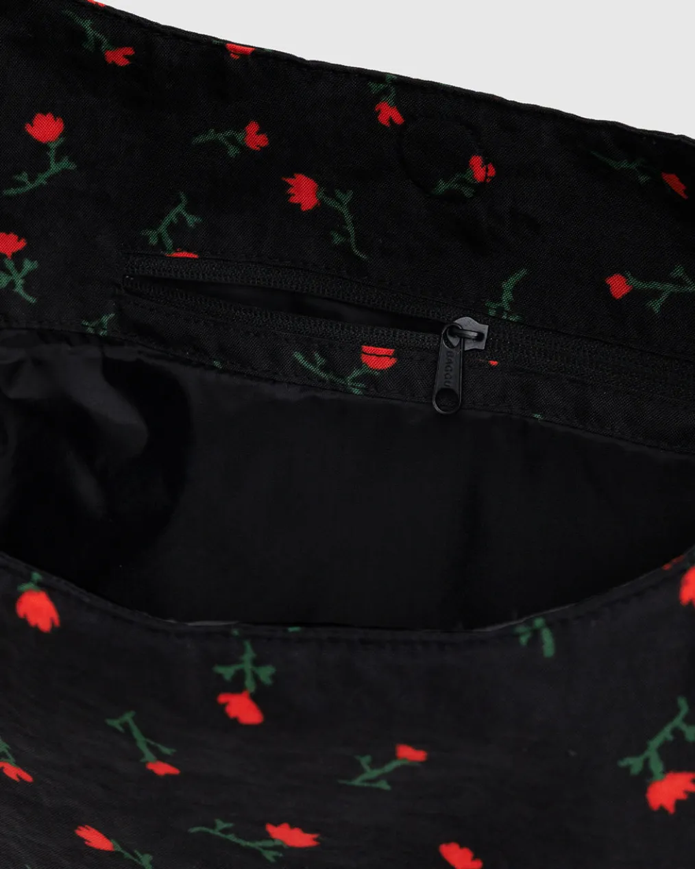A slouchy, softly structured nylon bag with an adjustable strap. Interior zip pocket with a magnetic closure. Fits a 13/14” Puffy Laptop Sleeve.