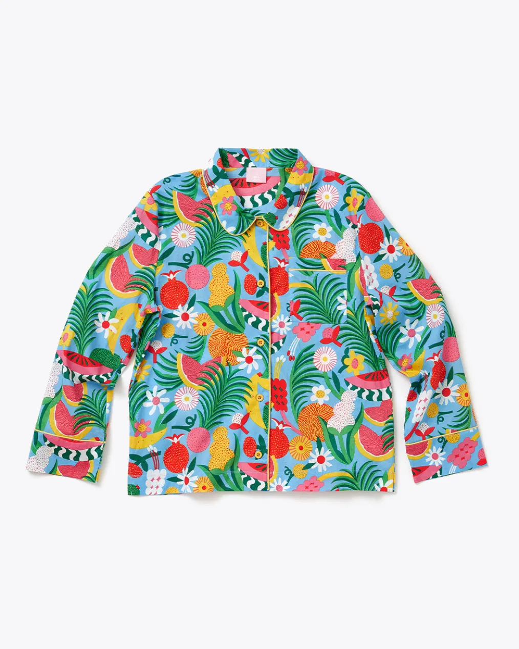 Manifest a tropical vacation. This leisure shirt has long sleeves, a classic fit, and a front patch pocket.