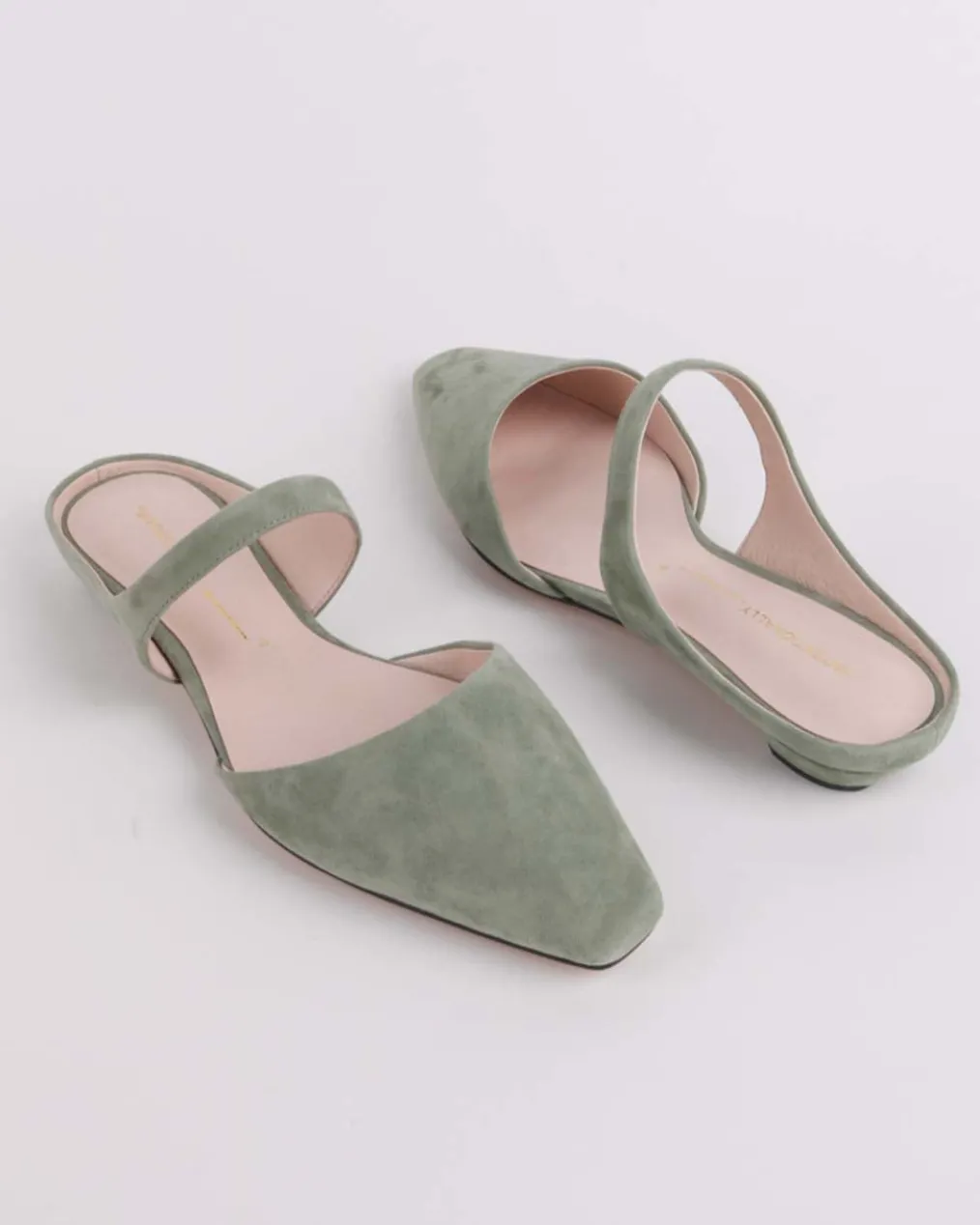 With a snipped toe and dual strap upper, this low heeled slip on is the modern answer to the flat. Perfect with skin, or chic with tights, we are bananas about this new arrival.
