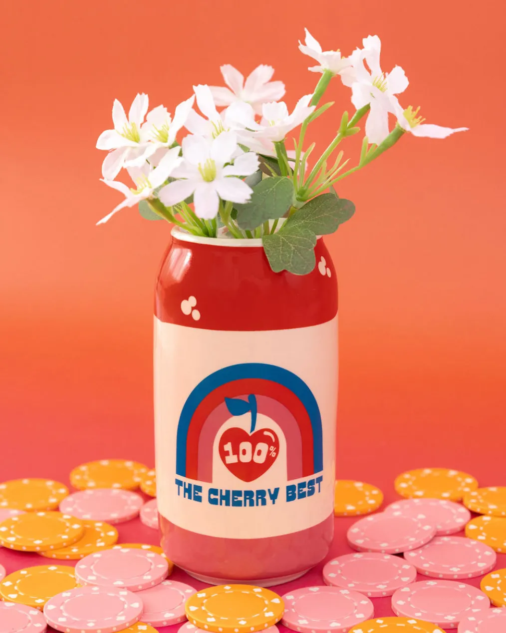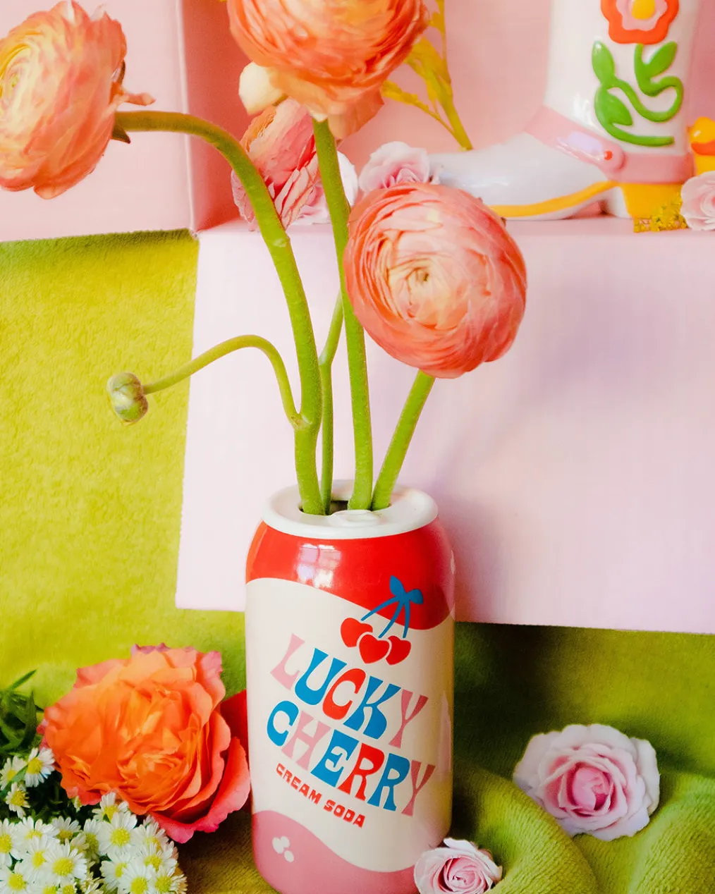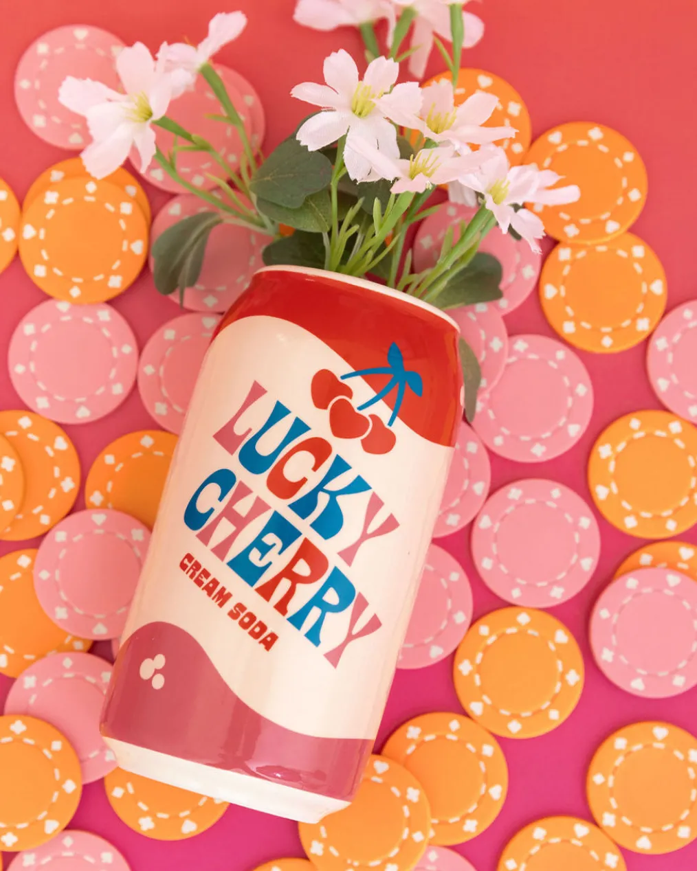 You’re in luck: A lucky cherry cream soda vase. This is made with hand-painted ceramic, and it’s the sweetest home for a small bouquet or some pens and pencils.