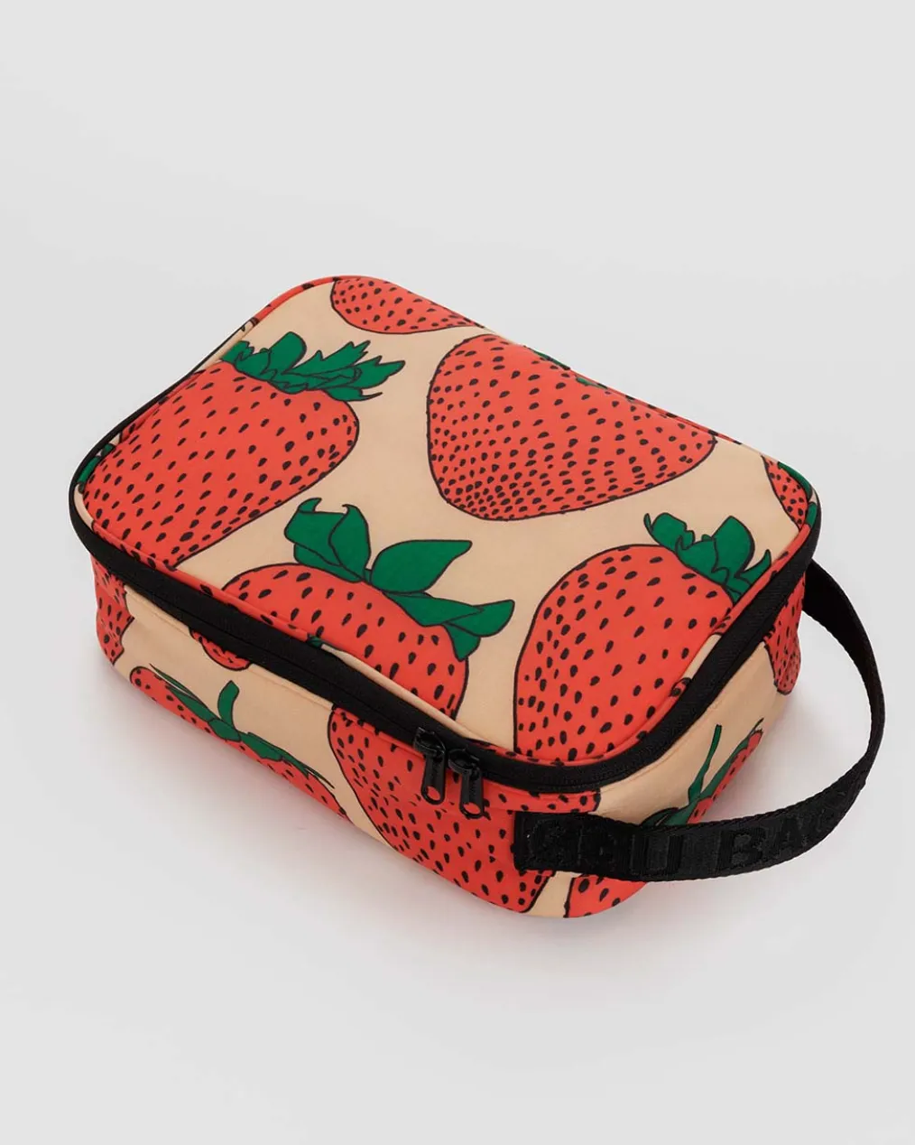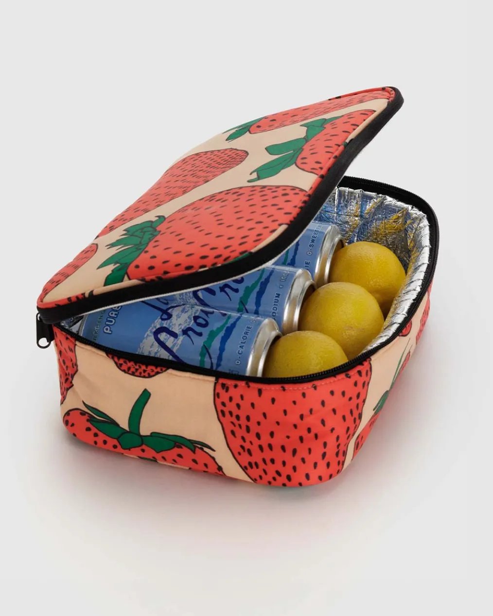 An insulated zippered lunch bag, perfectlysized to fit in a bag or backpack.