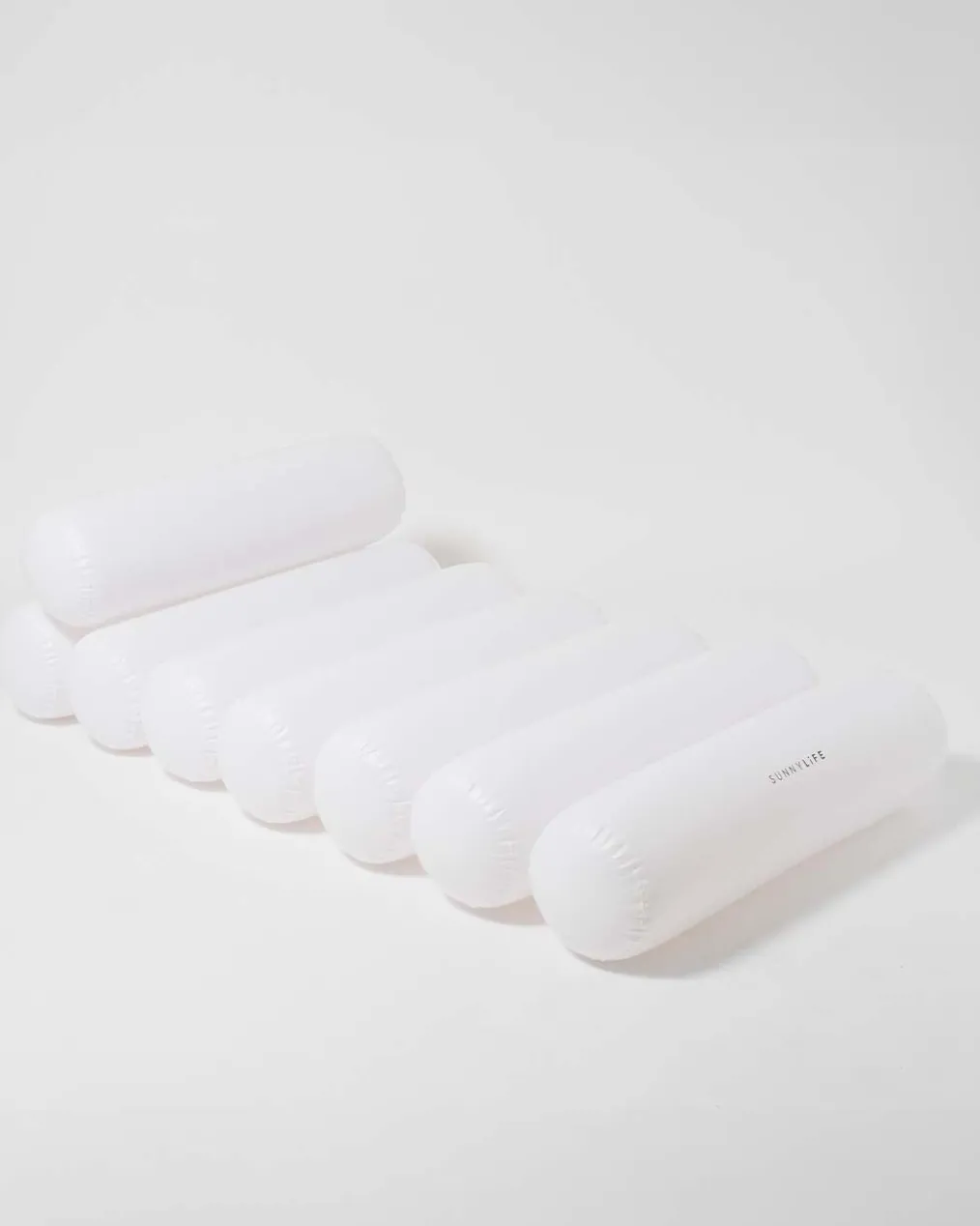 Experience the best of summer where luxury meets leisure. The Le Weekend Luxe Tube Lilo is stylish, oversized, and the CEO of relaxation, perfect for floating in the pool and long balmy days spent by the seaside. Designed in an easy-to-lie-on shape and with its luxurious size, floating has never been so effortlessly comfortable. Take delight in the simple pleasures and have fun with its minimalistic white colorway that will have you drifting into a daydream.