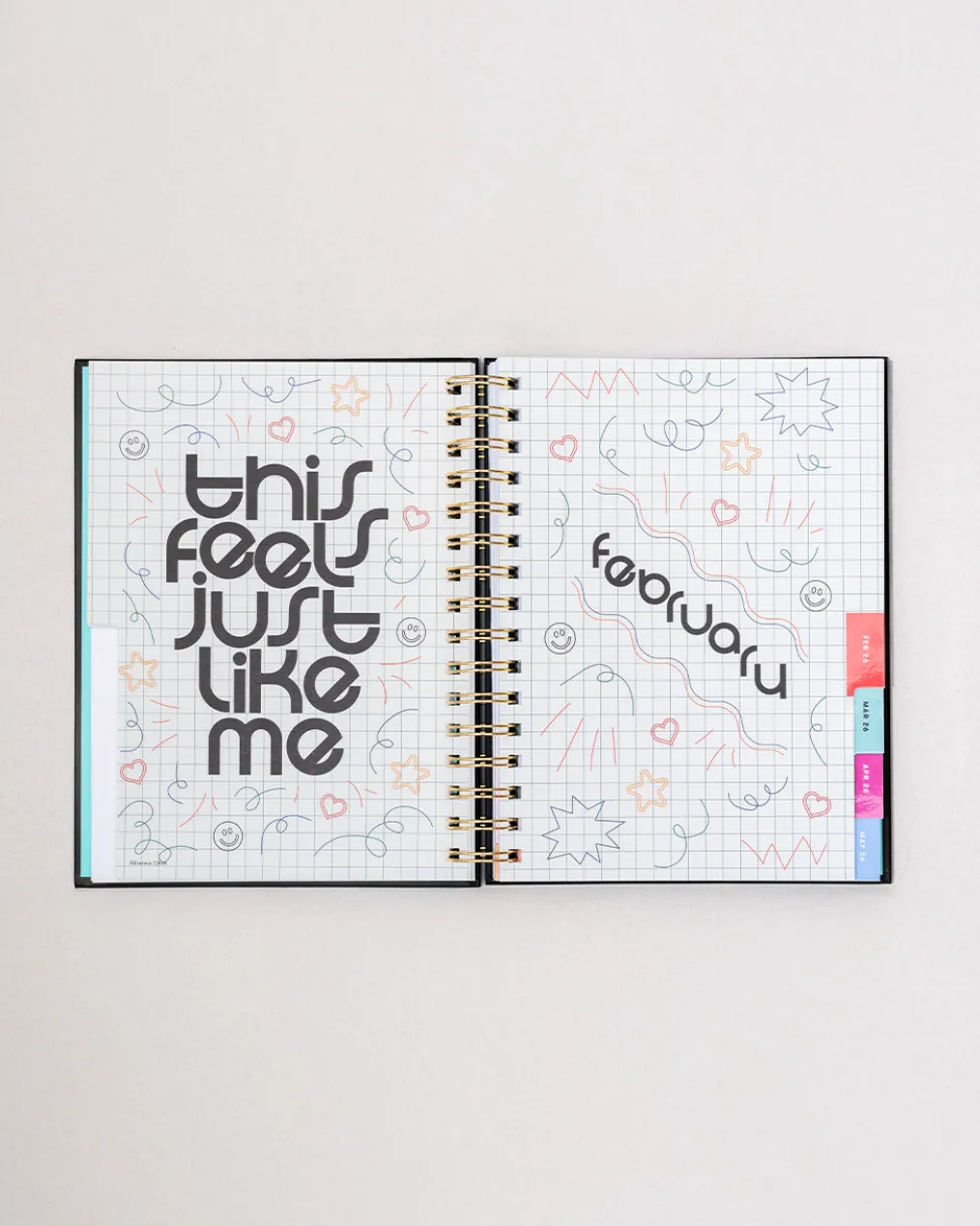Can a planner really better your life in every single way? This one is designed to do exactly that. Meet the ban.do planner! Inside you’ll find year, month, and week views. Plus, lots and lots of amazing extras like artwork, stickers, notes pages, a coloring page, and a book tracker page! This one’s in our medium size with wire-o binding.