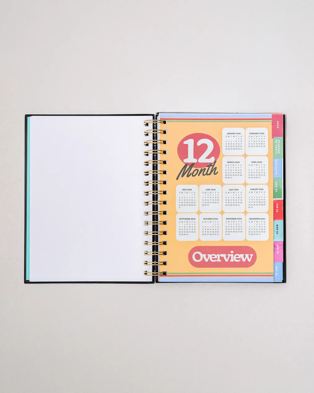 Can a planner really better your life in every single way? This one is designed to do exactly that. Meet the ban.do planner! Inside you’ll find year, month, and week views. Plus, lots and lots of amazing extras like artwork, stickers, notes pages, a coloring page, and a book tracker page! This one’s in our medium size with wire-o binding.
