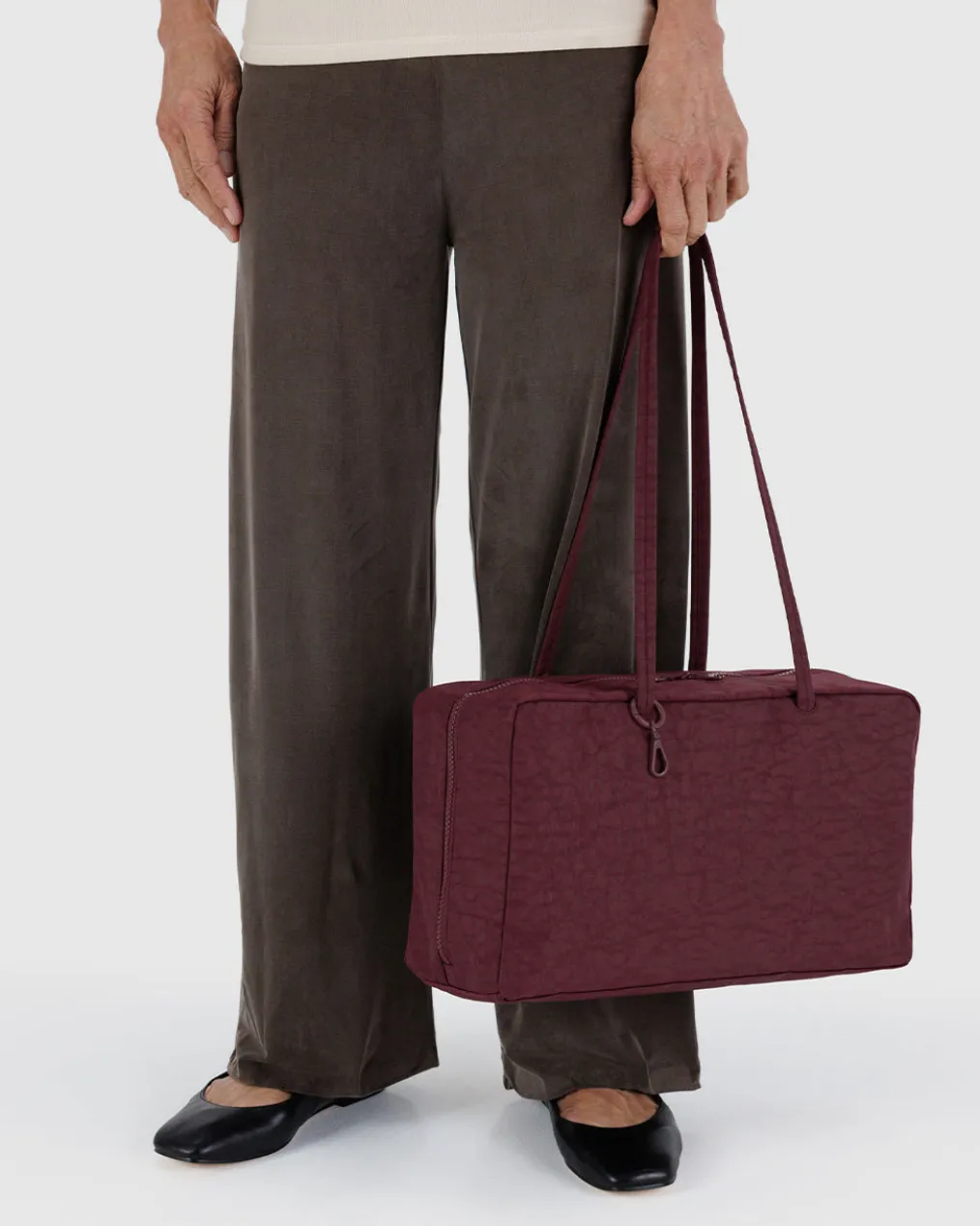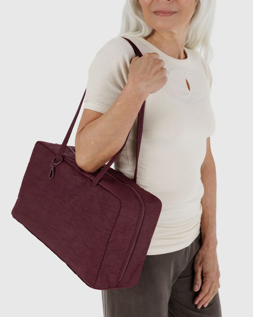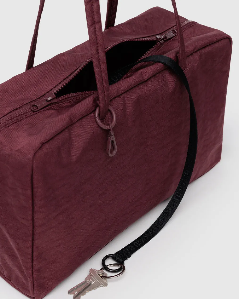 A larger version of Baggu’s bowler bag, designed to be accessorized. Four charm loops and a swivel clasp let you accessorize from every angle. A wide interior includes a convenient zip pocket and room to carry more than the essentials.