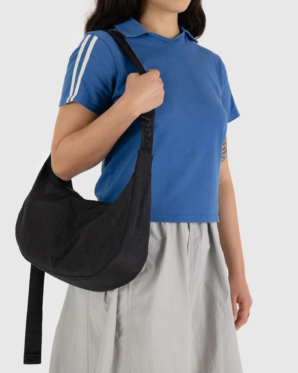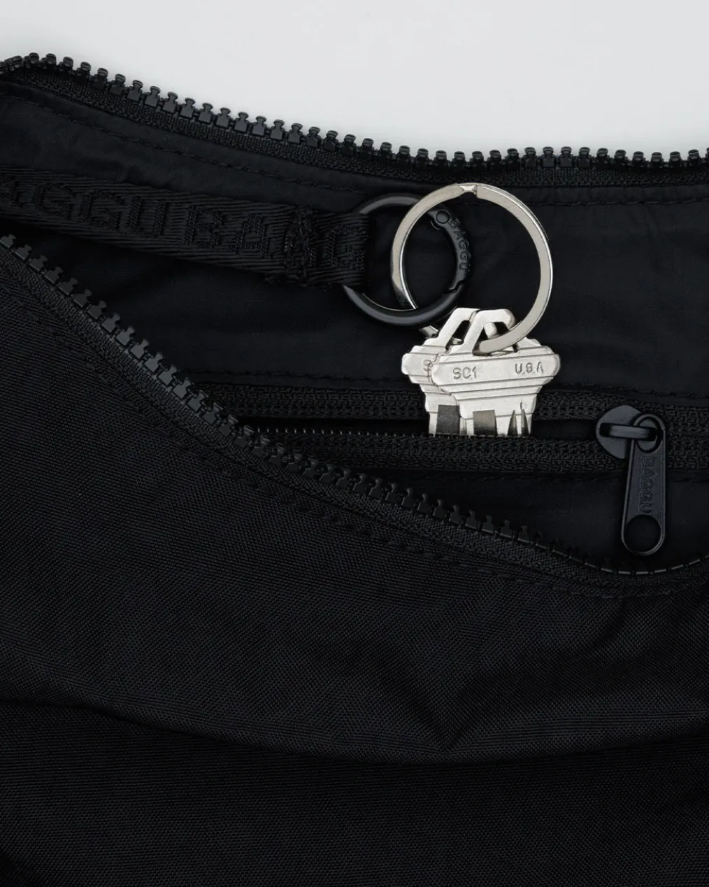 Lots of neat things are crescent-shaped: bananas, cashews, croissants, and now this Baggu bag. It features two interior zip pockets, an adjustable strap, and machine-washable fabric.